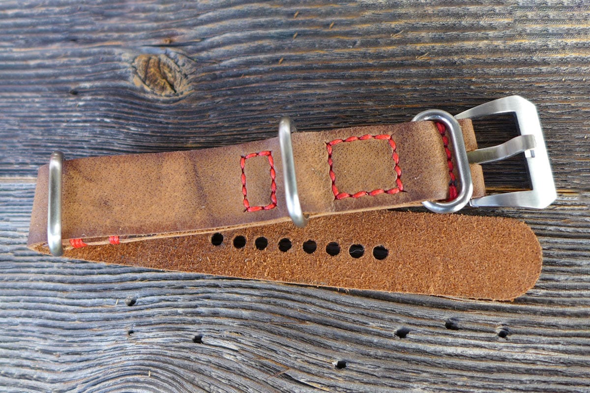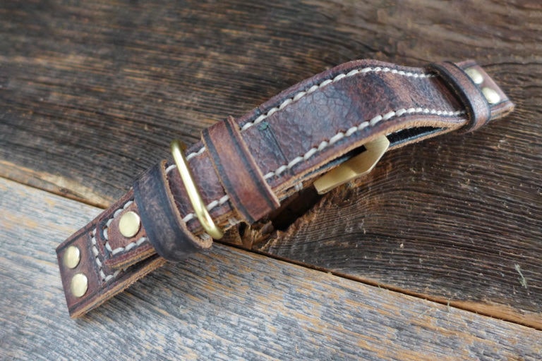 Bei schmalen Bändern – zum Beispiel 18mm oder sogar schon bei 20mm – wird es gegebenenfalls schon eng zwei der kleineren Nieten noch nebeneinander zu positionieren. Eine Alternative bilden dann hier die grösseren Nieten, die dann pro Bandseite nur einmal mittig gesetzt werden könnten.