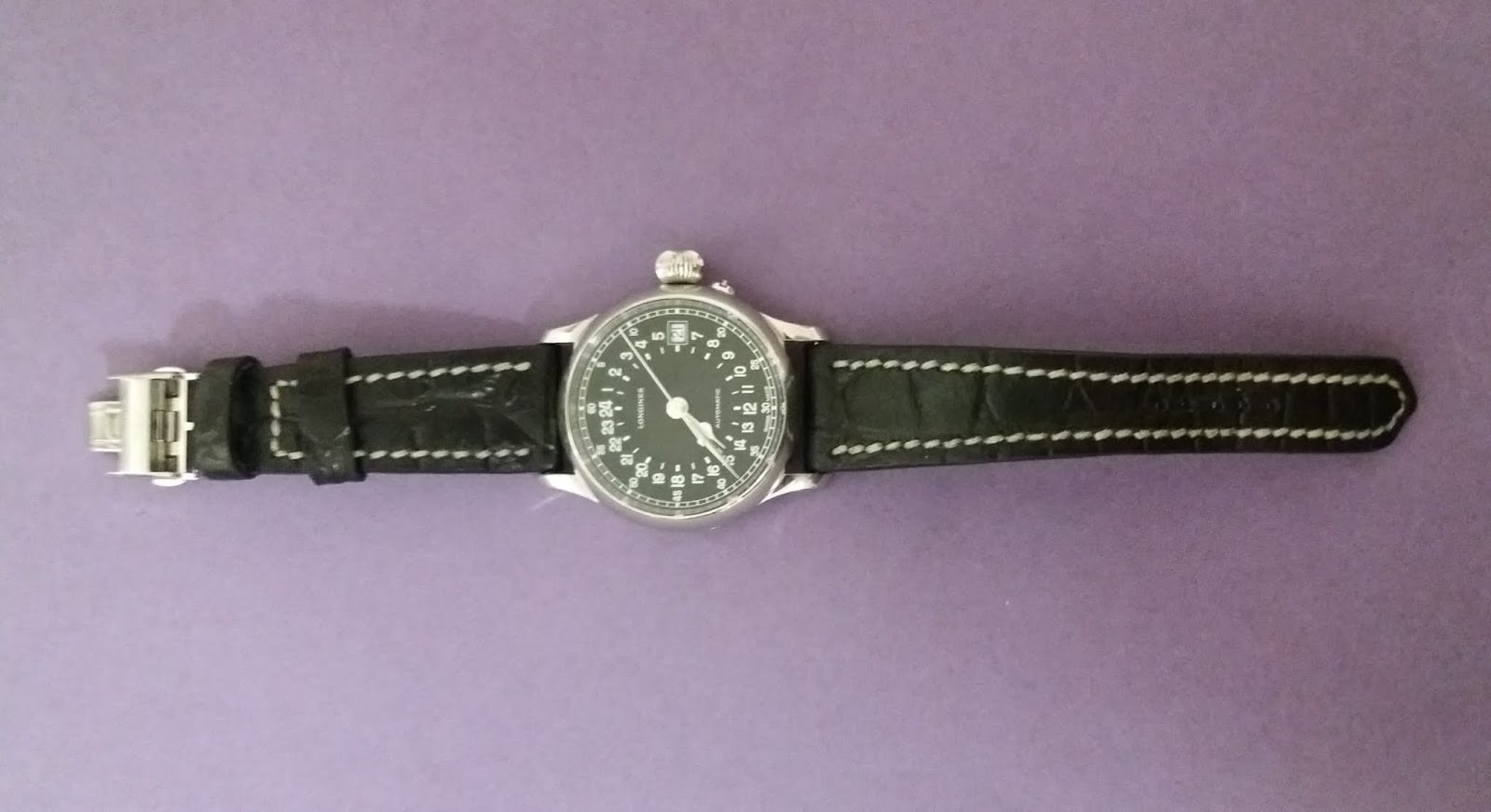 #1000 Caiman schwarz (Rindsleder geprägt) Solid-Line, (Sonderanfertigung, Modell open stitch, Garn natur, Kantenfarbe schwarz)