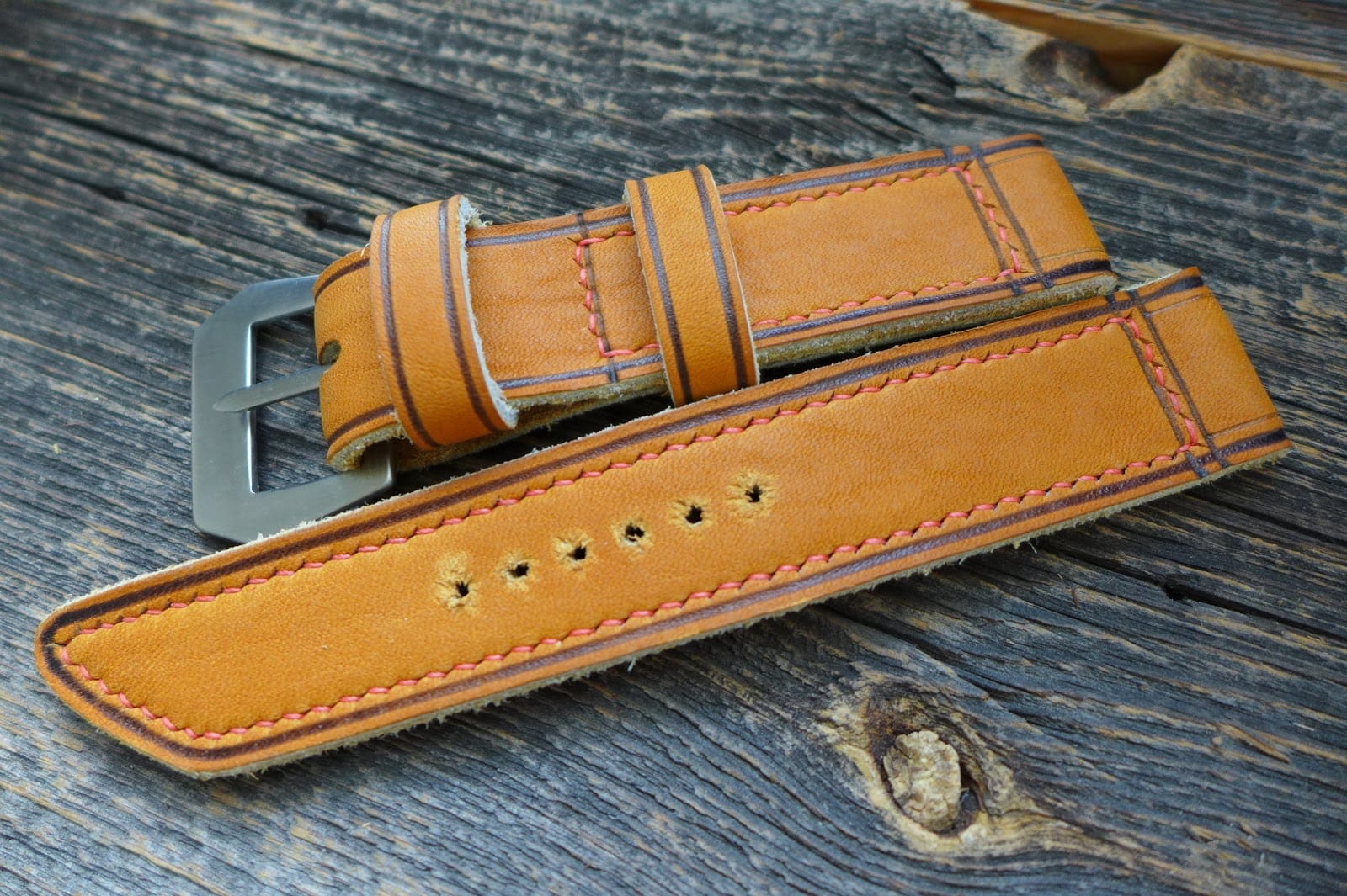 #1002 Horween baseball glove tan Classic-Panerai Line (Modell closed stitch, Garn watermelon)