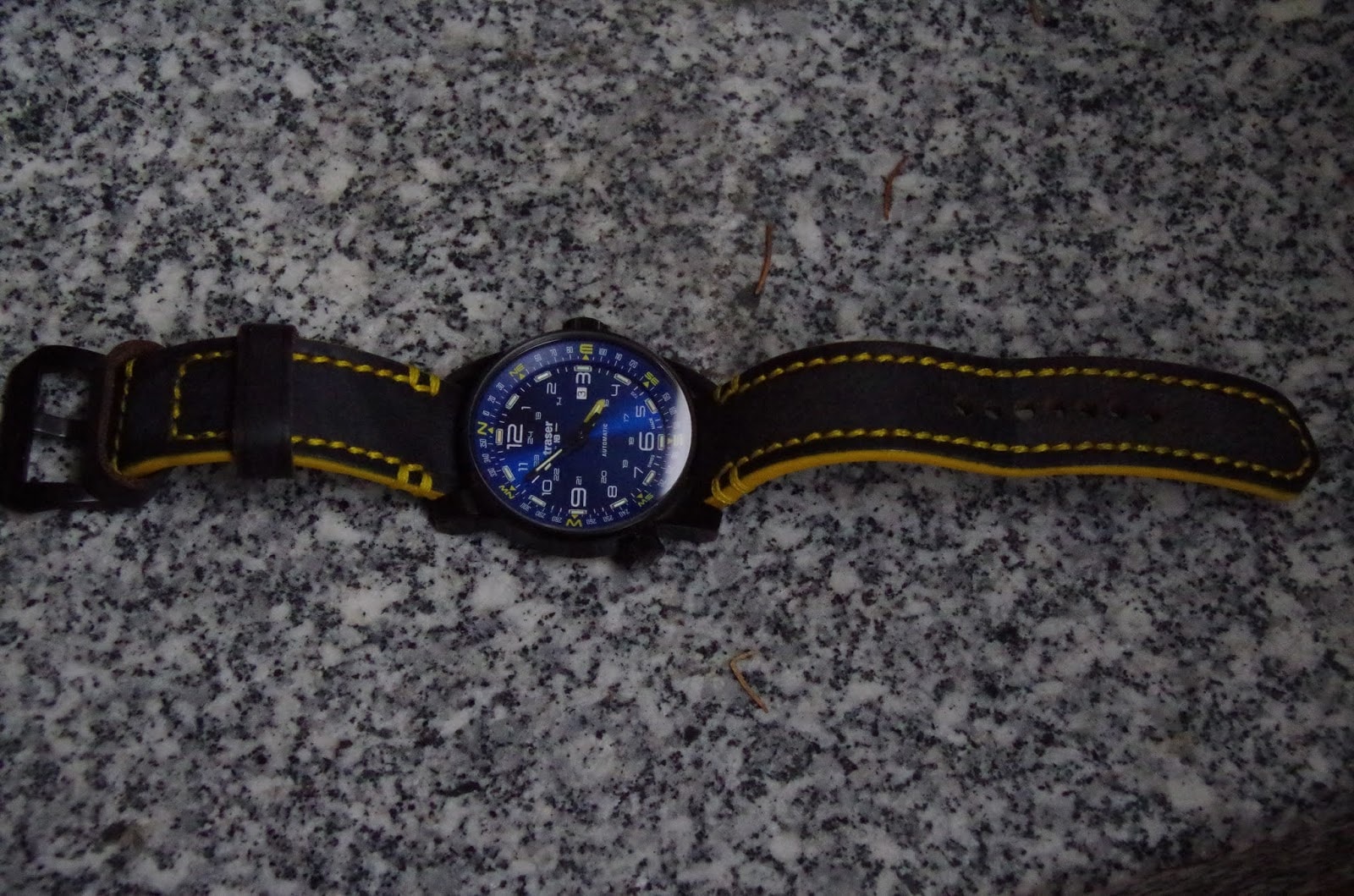 # 1008 Wasserbüffel dunkelblau Solid-Line (Modell u-turn, Garn signalgelb, Kantenfarbe gelb)