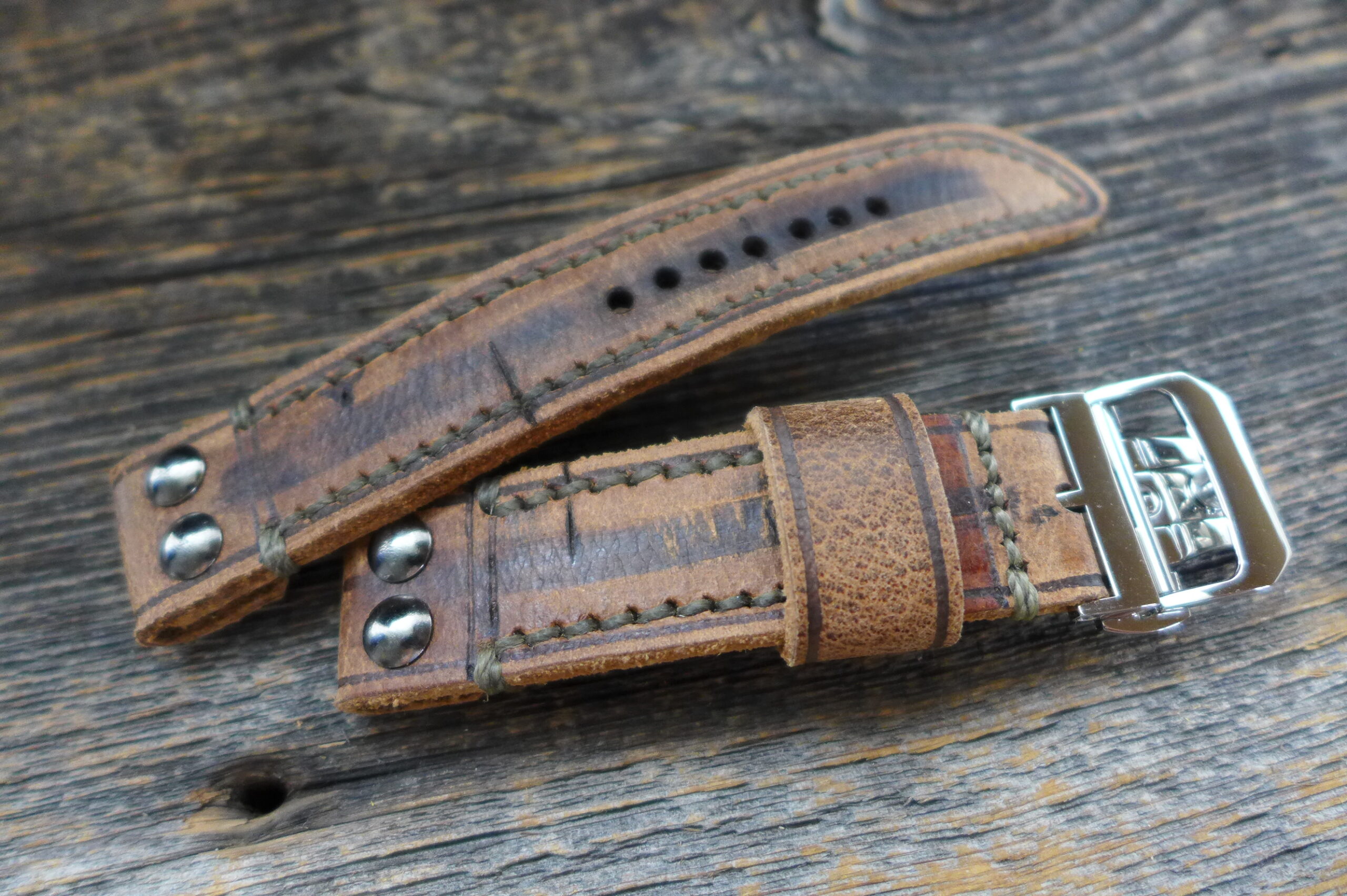 #1019 Wasserbüffel hellbraun burned&aged Vintage Line (Sondermodell Heritage Airman 2, Garn dunkel oliv)