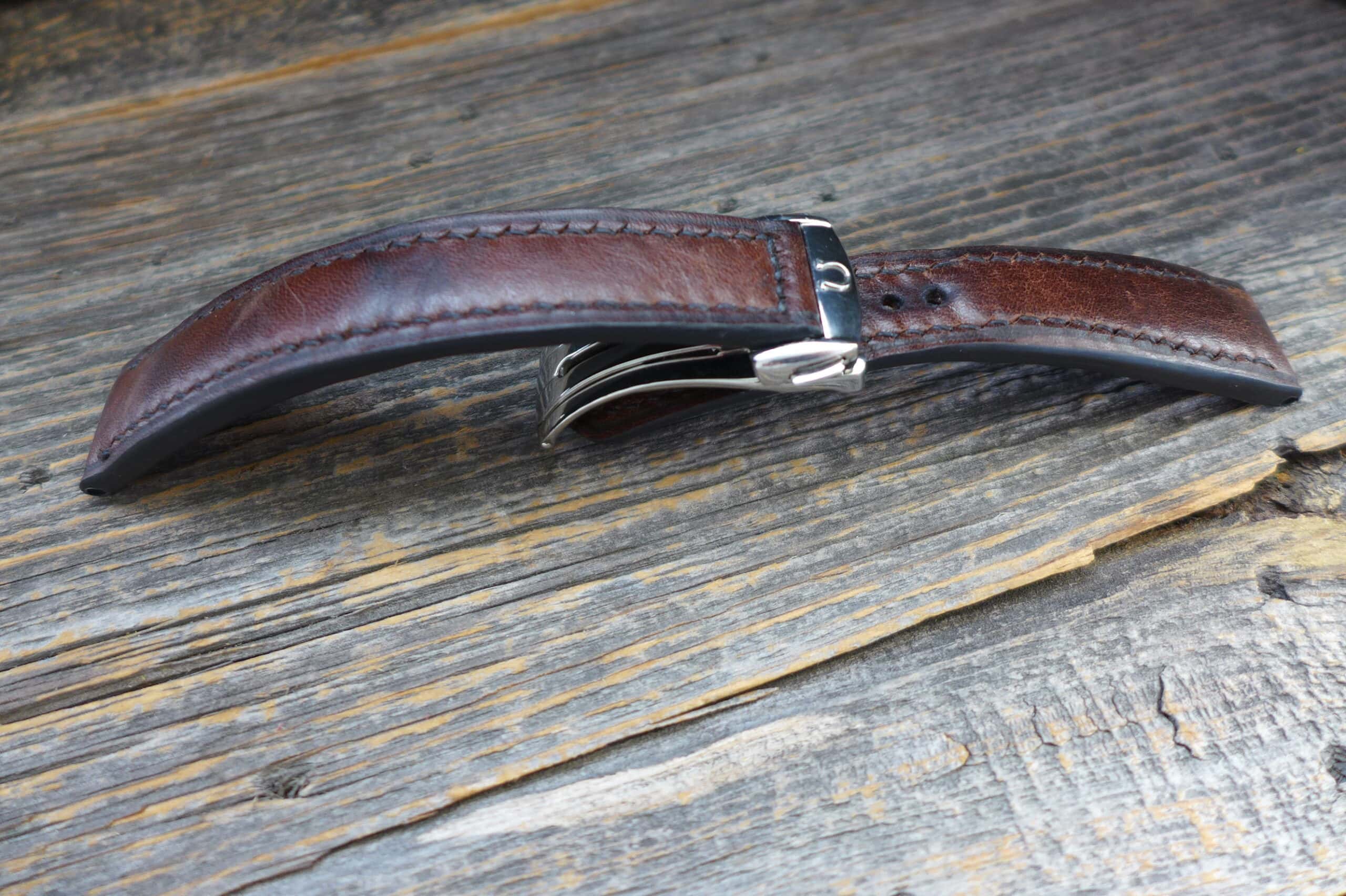 #1038 walnut true-ancient Vintage Line (Sonderanfertigung mit Bombierung, Modell open stitch, Garn schwarz, Kantenfarbe schwarz)