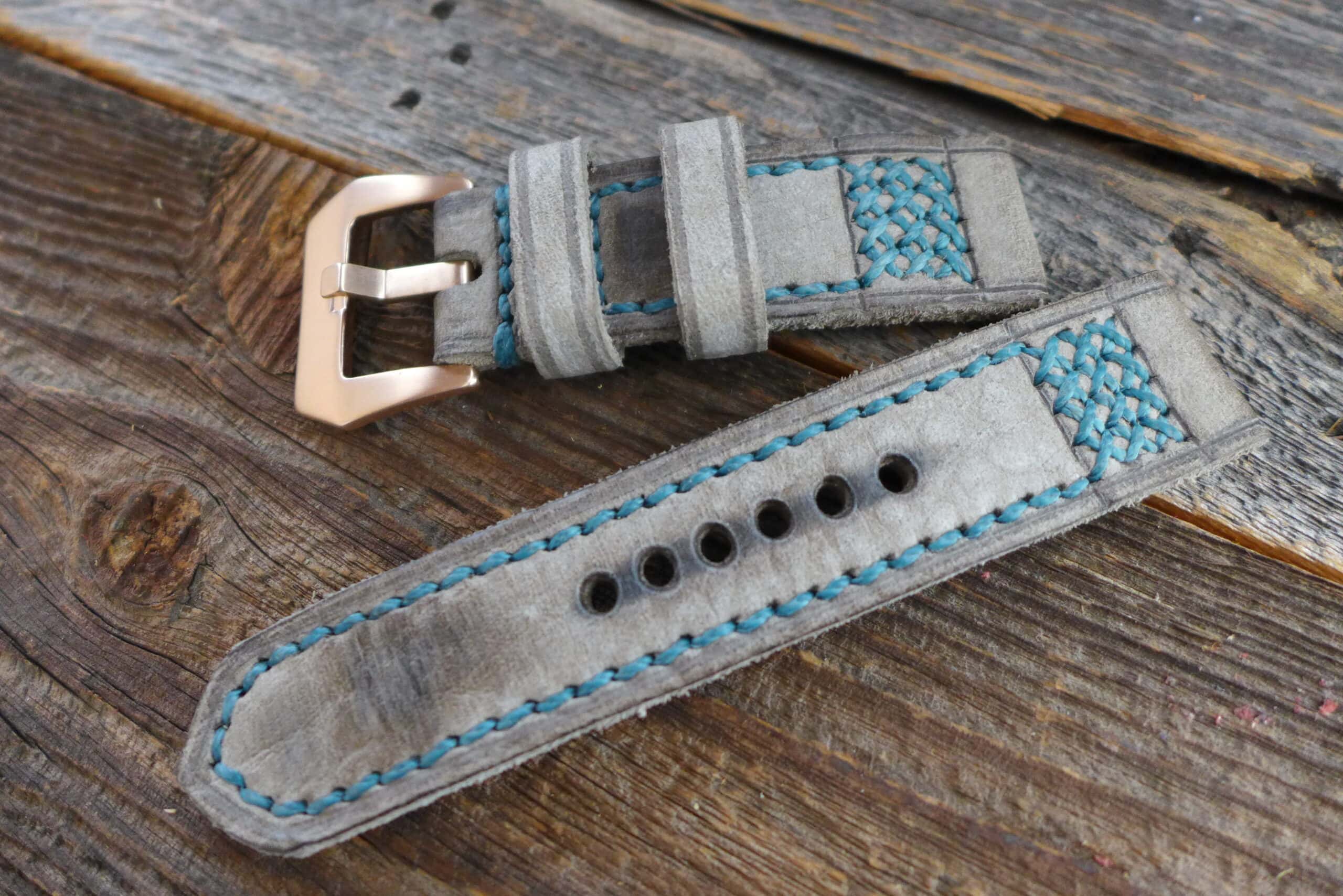 #1057 aschgrau burned&aged Vintage Line (Modell black forest, Garn grün-blau)