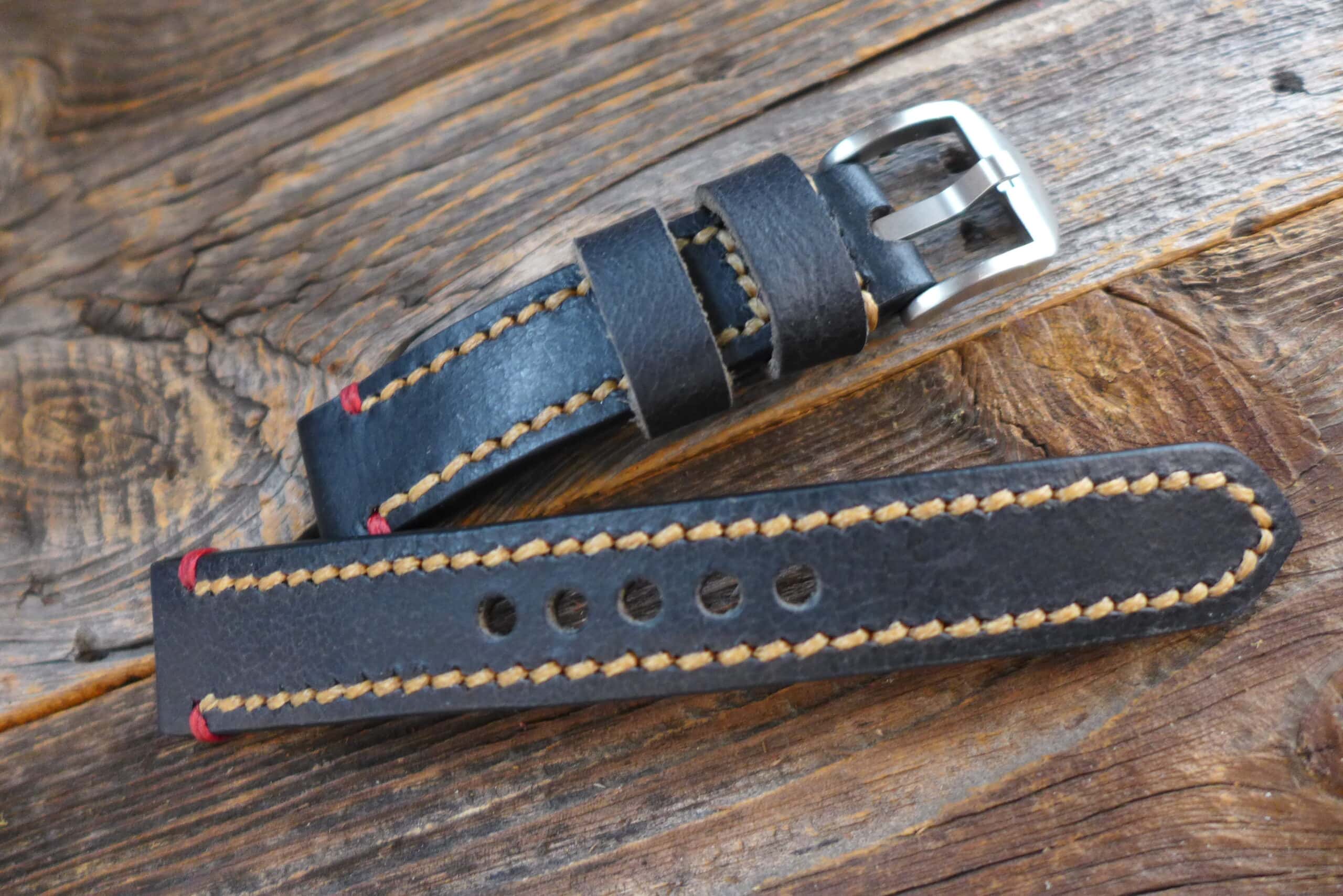 #1063 Wasserbüffel schwarz Solid-Line (Modell marine, Garn karamell & dunkelrot)