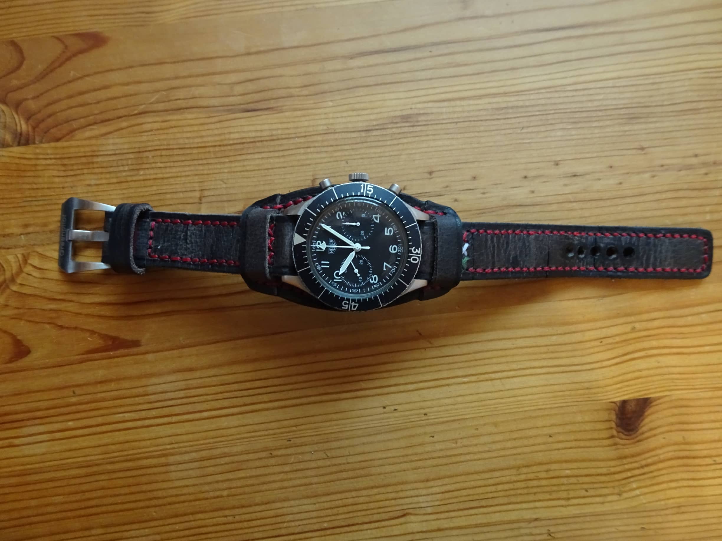#1071 Wasserbüffel grau burned&aged Vintage Line (Sondermodell Bundstrap GP 1 – the oval one, Garn weiß & grün & dunkelrot)
