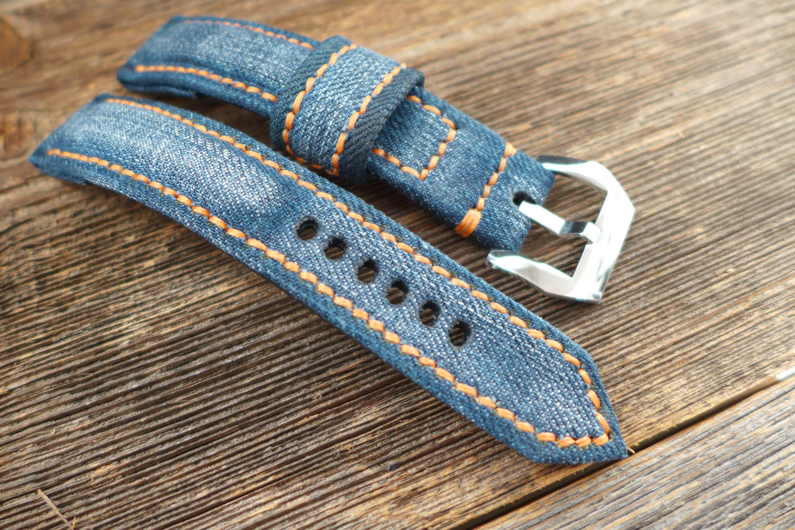 #1090 jeans blau 01 Canvas Line (Sondermodell Jeans strap padded 1, Garn orange)