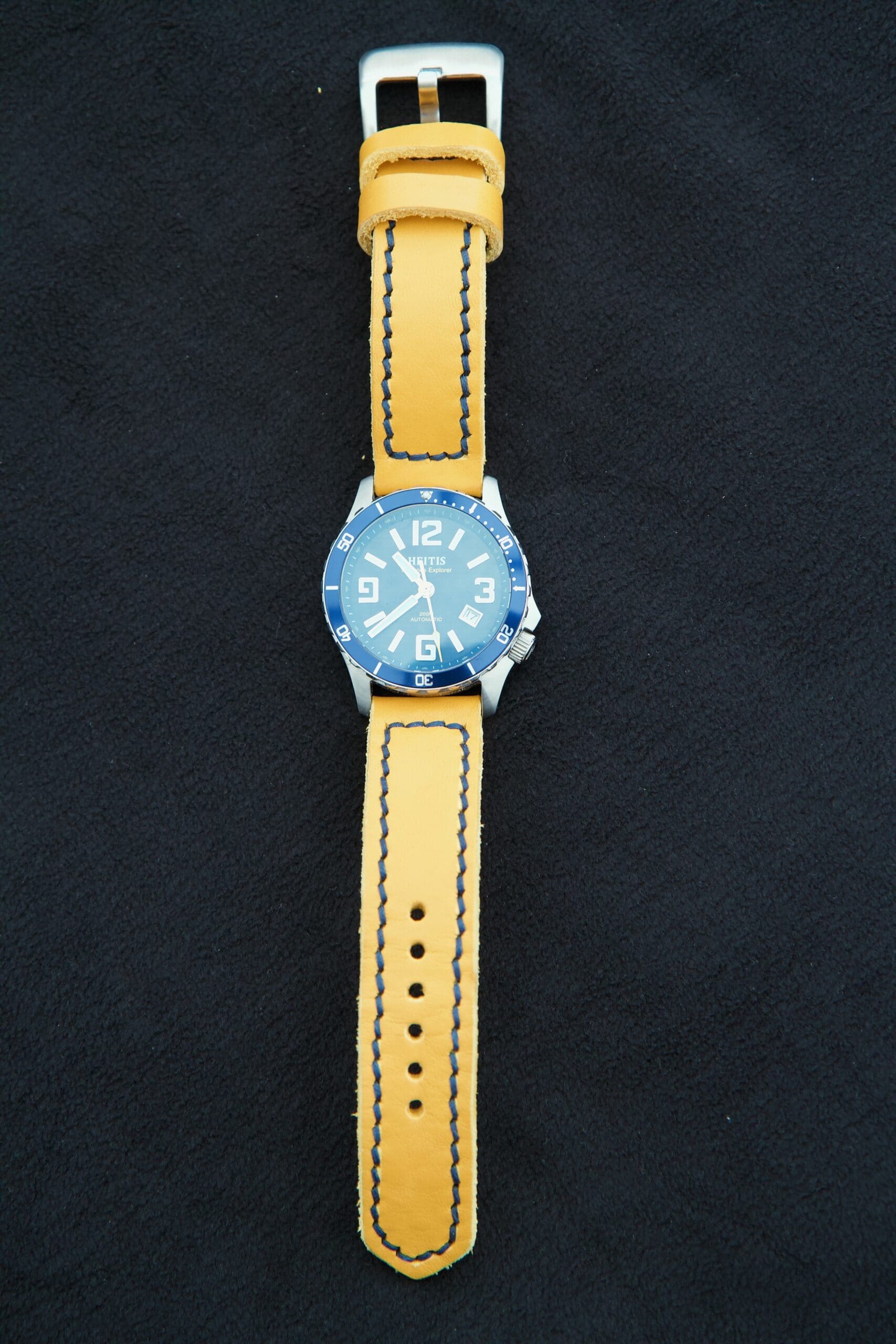 #1119 sonnengelb Solid-Line (Modell closed stitch, Garn dunkelblau)