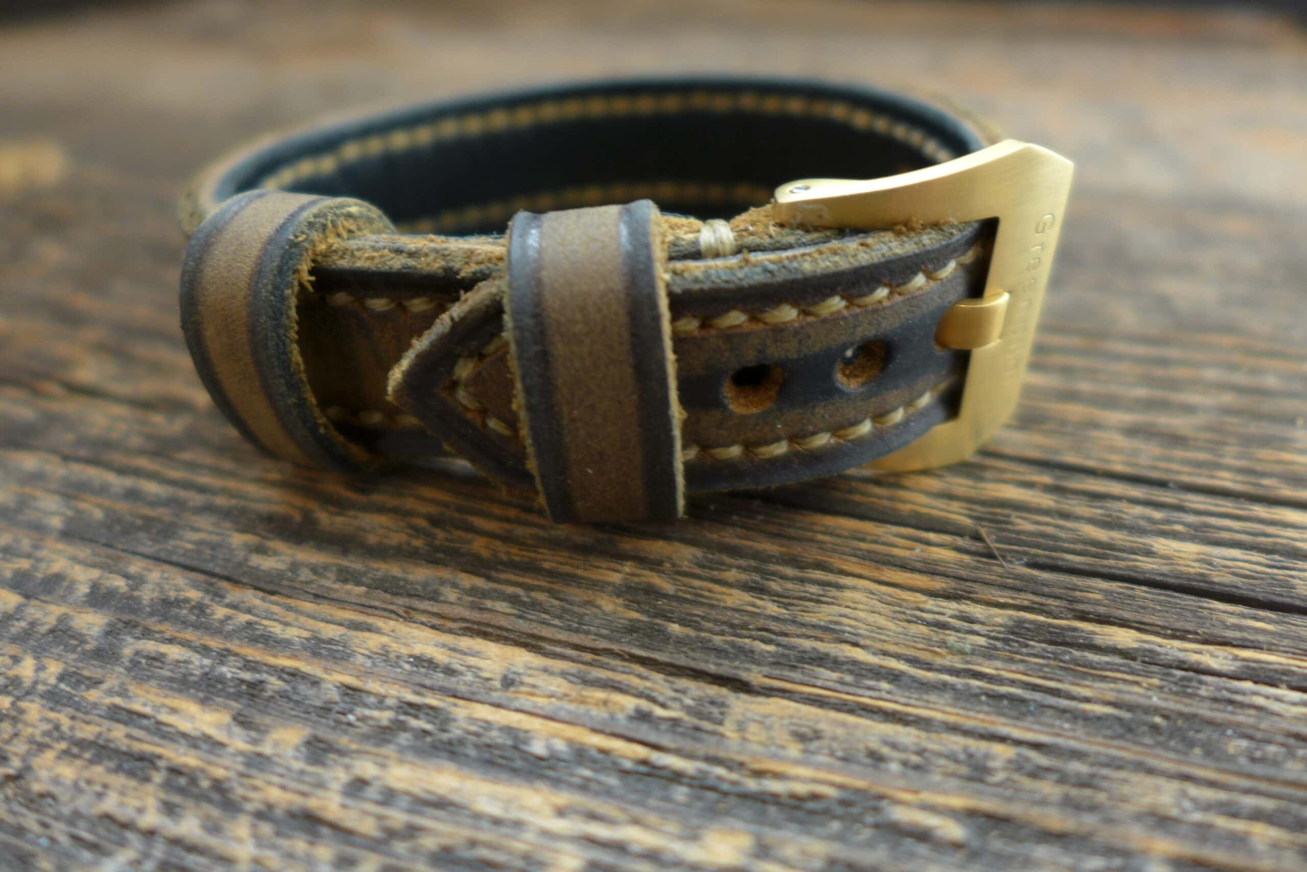 #1131 dunkel oliv-ocker burned&aged Vintage Line (Sonderanfertigung Armband, Garn gold-gelb)