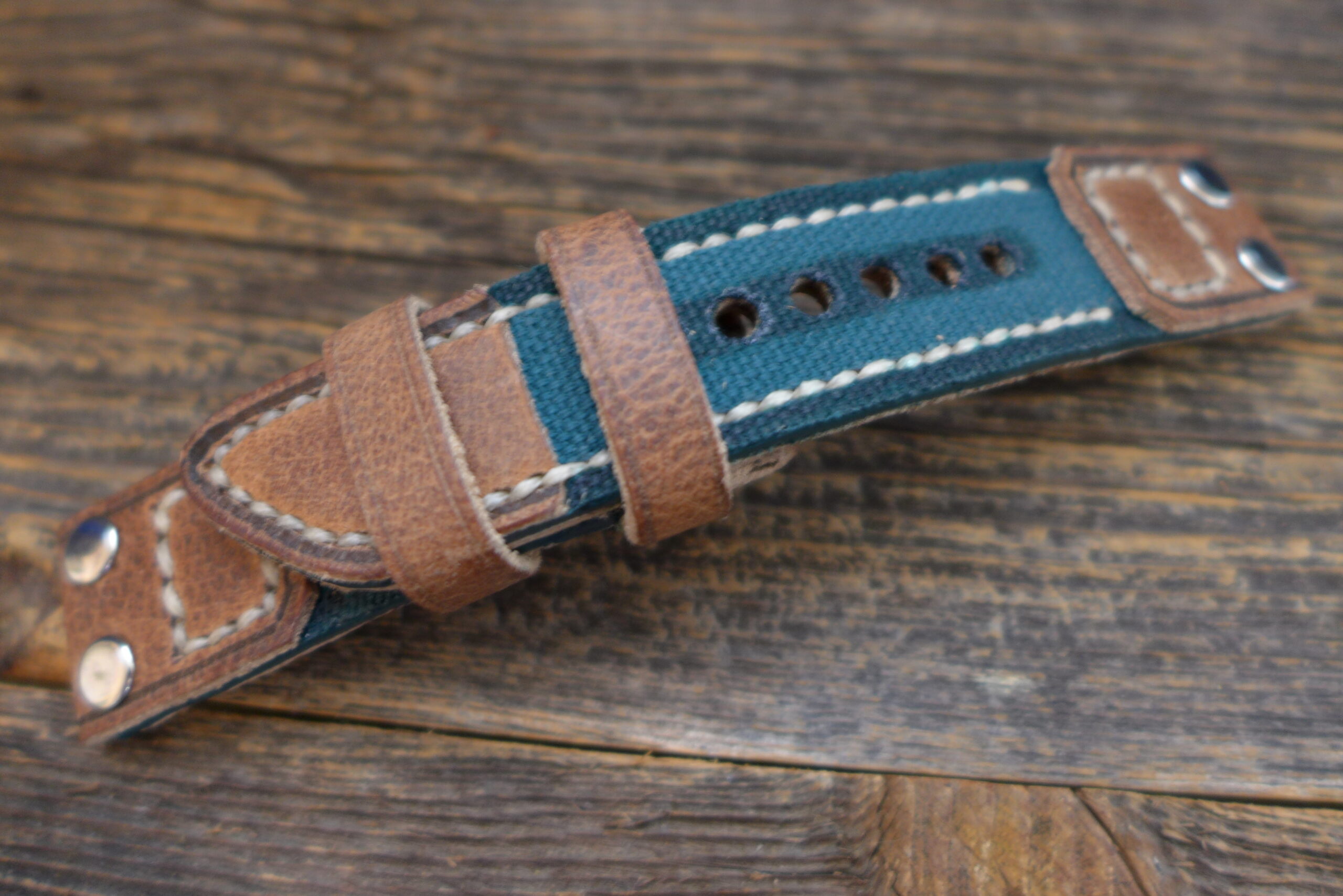 #1137 Canvas petrol Canvas Line (Modell Bauart flap style, Sonderanfertigung mit Nieten, Garn natur)