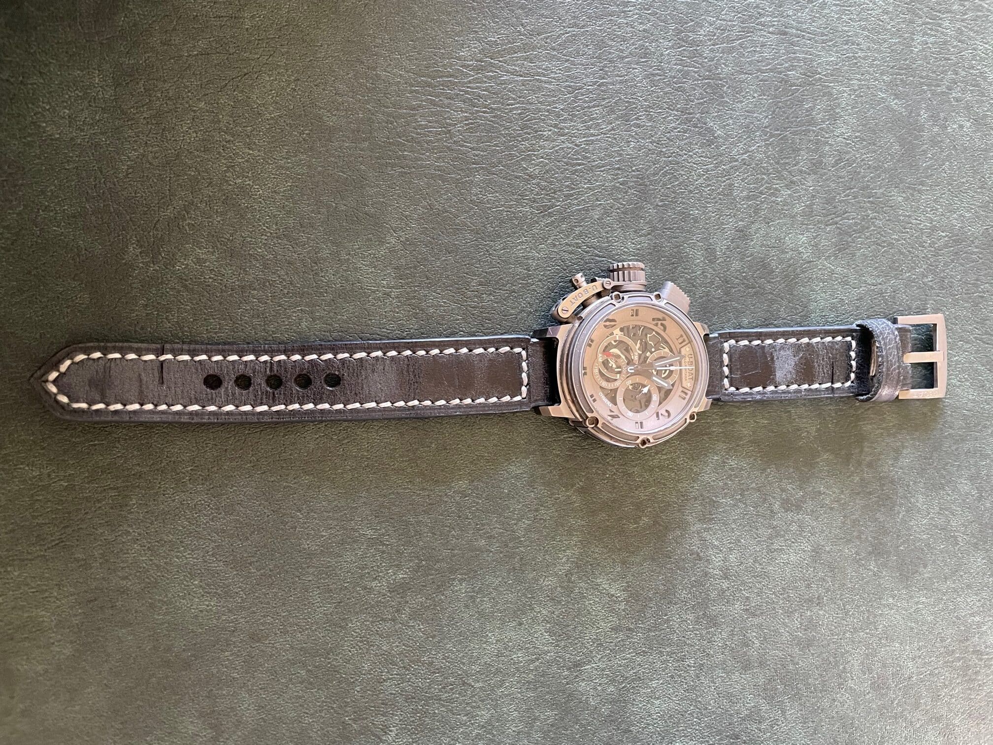 #1158 Wasserbüffel anthrazit burned&aged Vintage Line (Modell closed stitch, Garn hellgrau, Kantenfarbe anthrazit)