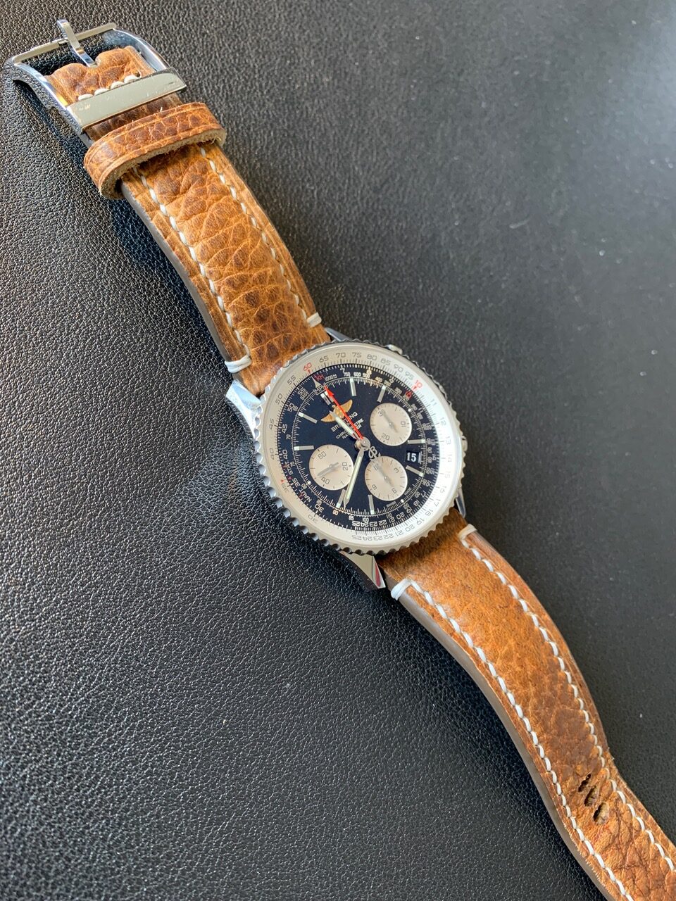 #1162 Horween buckaroo tan Classic-Panerai Line (Sonderanfertigung mit Bombierung, Modell marine, Garn white, Kantenfabe dunkelbraun)