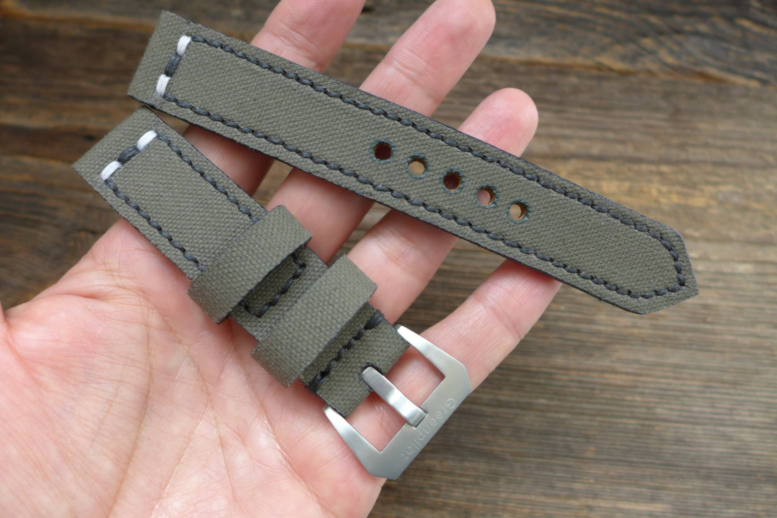 #1176 Canvas Khaki grün (Modell closed stitch, Bauart top layer, Garn schwarz & weiß)