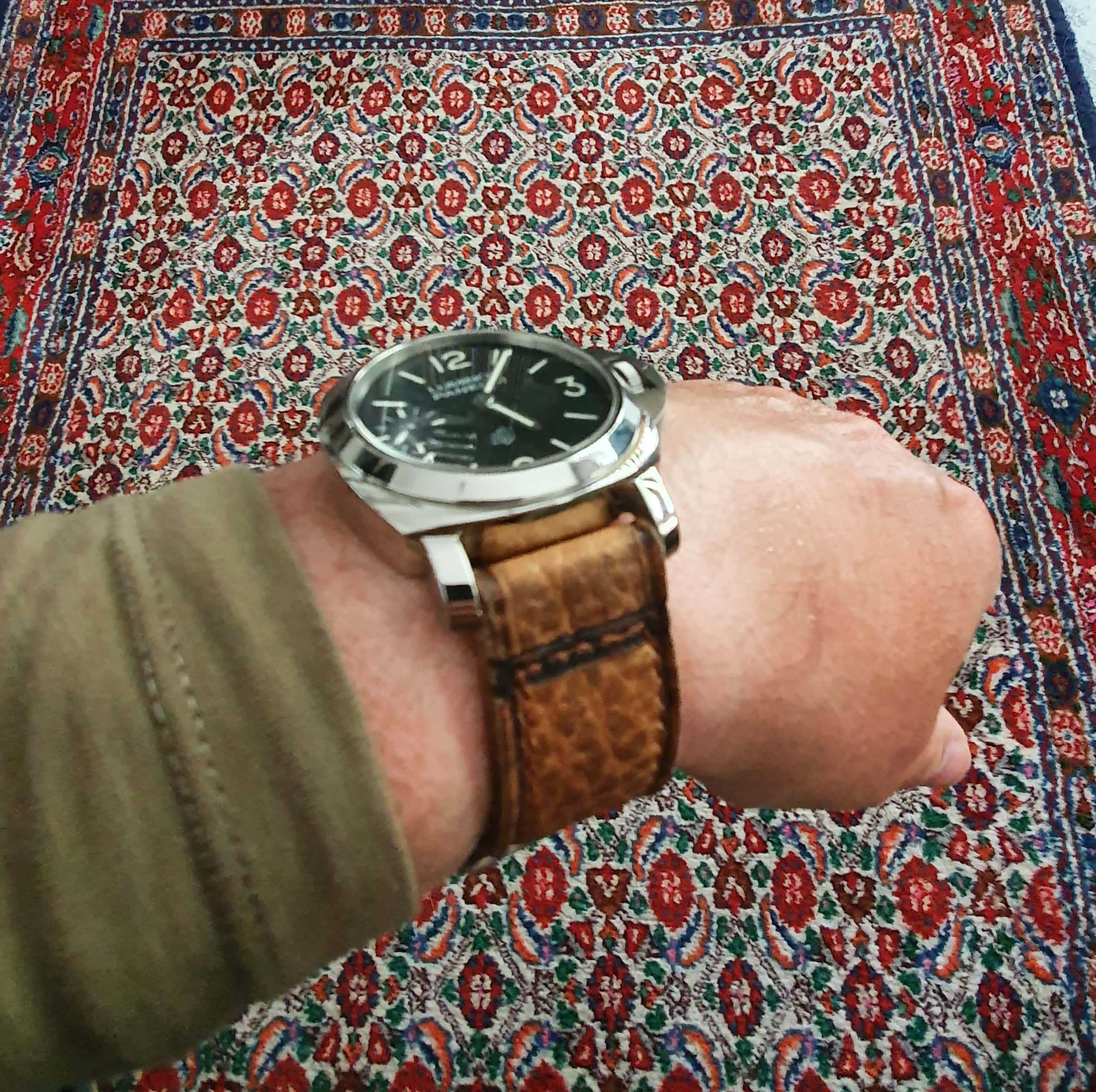 #1190 Horween buckaroo tan Classic-Panerai Line (Modell closed stitch, Garn coffee)