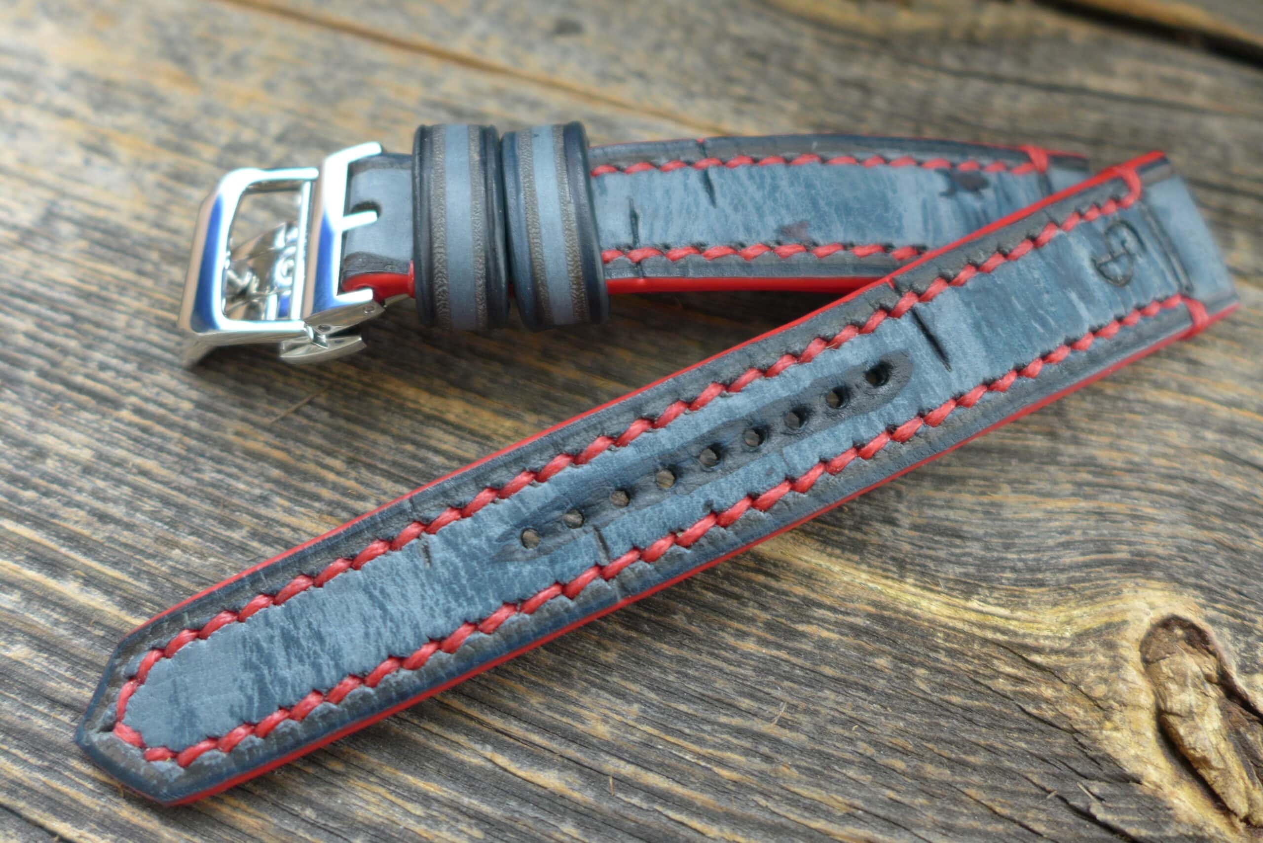 #1193 schieferblau burned&aged Vintage Line (Modell marine, Garn rot leuchtend, Kantenfarbe rot)