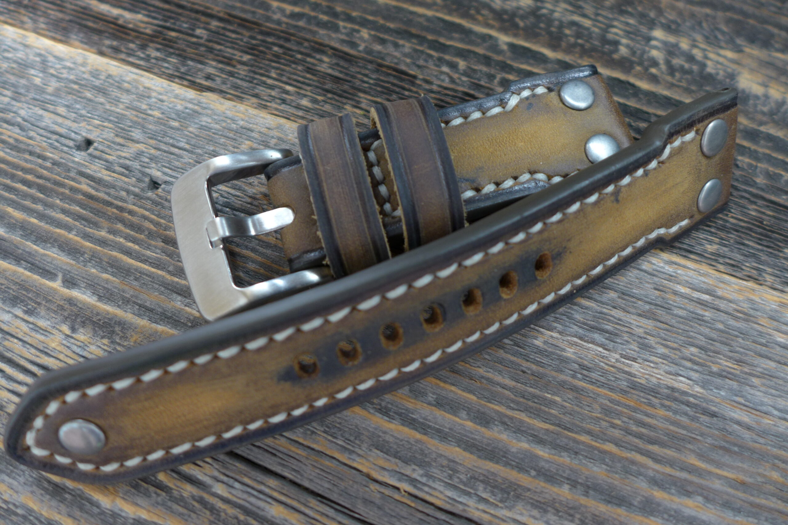 #1202 dunkel oliv-ocker burned&aged Vintage Line (Sondermodell Heritage Airman 2, Garn hellgrau, Kantenfarbe dunkel oliv-ocker)