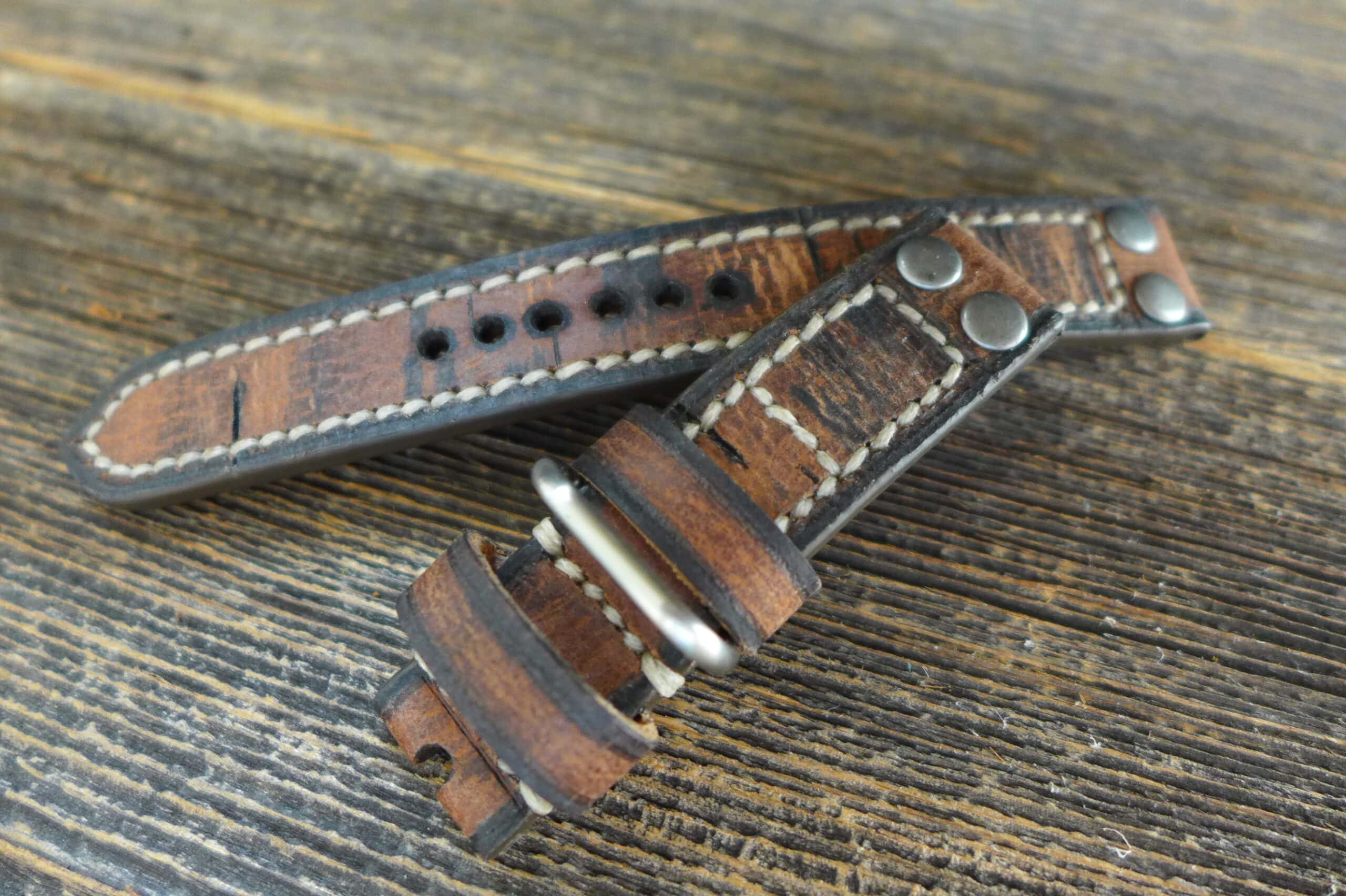 #1206 Wasserbüffel dunkelbraun burned&aged Vintage Line (Sondermodell Heritage Navigator 3, Garn natur, Kantenfarbe dunkelbraun)