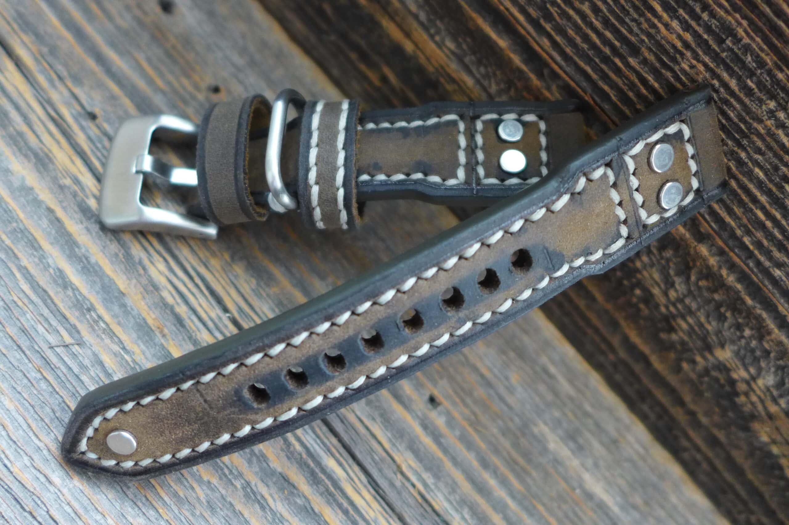 #1243 dunkel braun-oliv burned&aged Vintage Line (Sondermodell Heritage Navigator 3, Garn hellgrau, Kantenfarbe dunkelbraun)