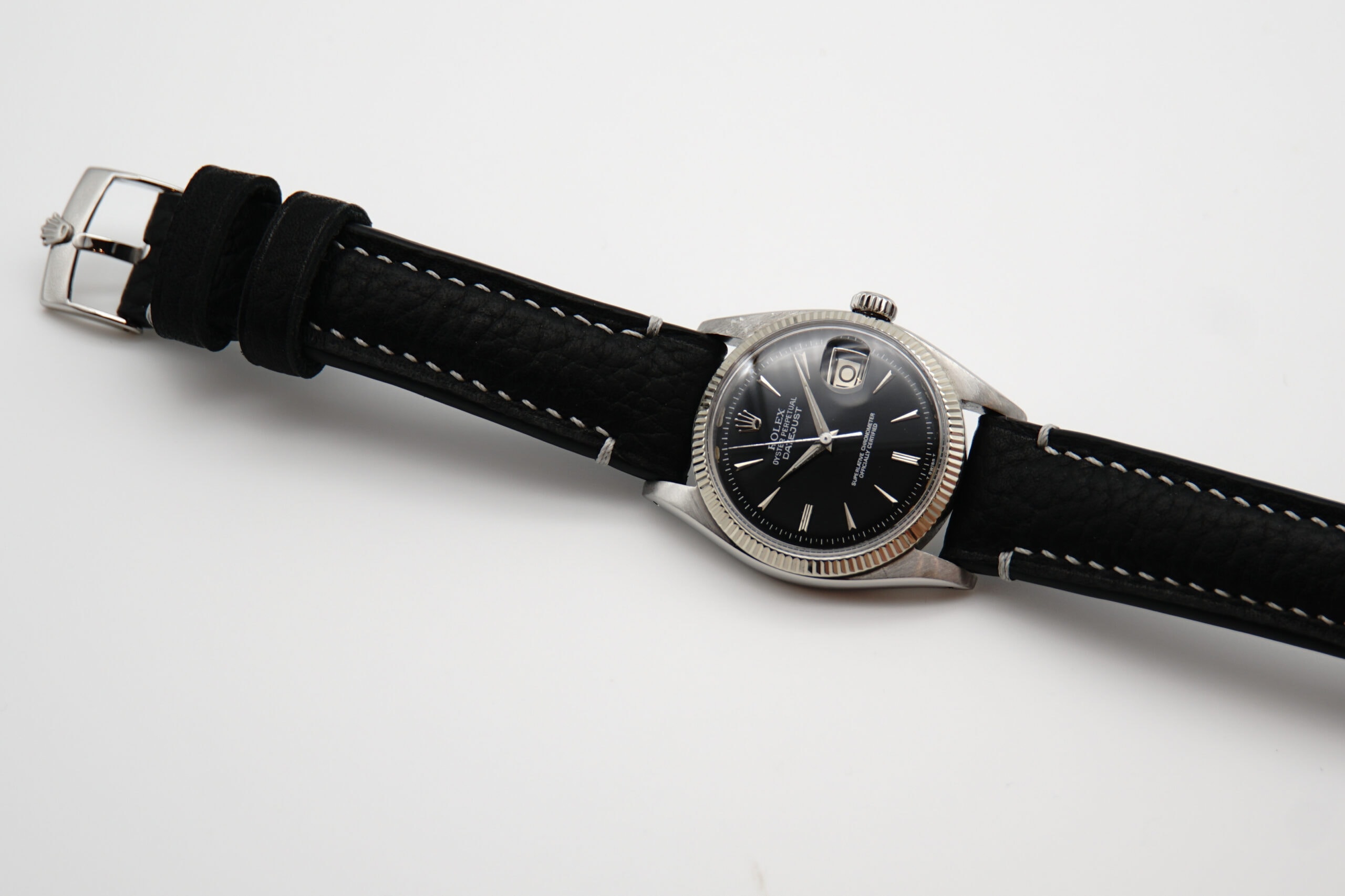 #1300 Sepici full grain black Classic-Panerai Line (Sonderanfertigung mit Bombierung, Modell marine, Garn pearl grey, Kantenfarbe schwarz)