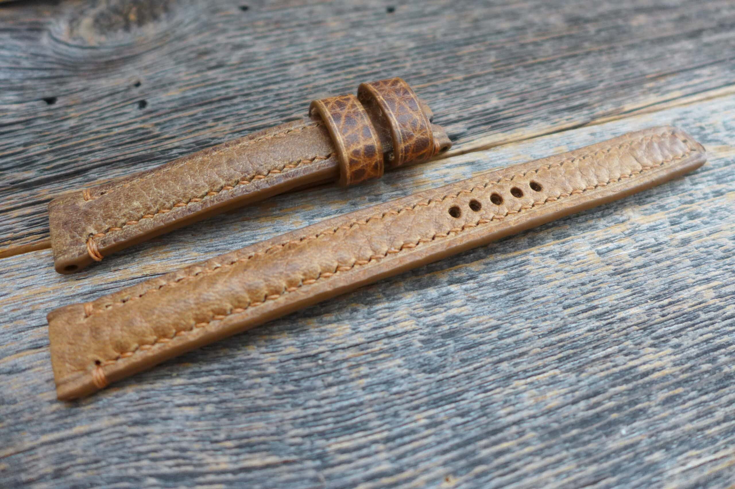 #1252 Horween buckaroo tan Classic-Panerai Line (Sonderanfertigung mit Bombierung, Modell marine, Garn caramel, Kantenfarbe dunkelbraun)