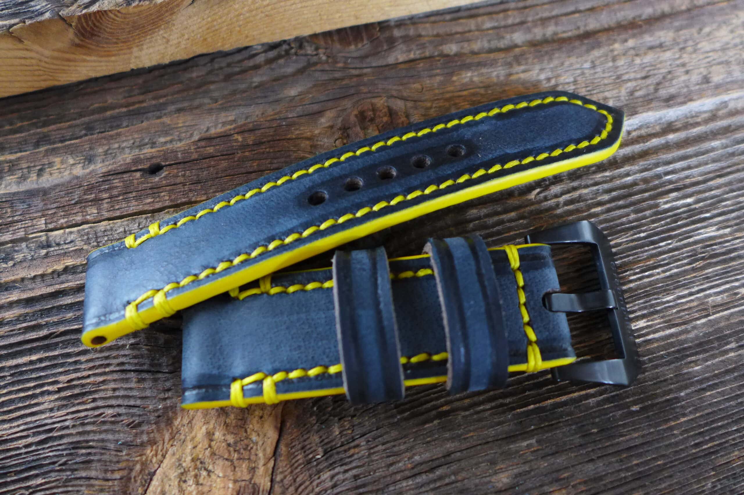 #1255 Wasserbüffel dunkelblau Solid-Line (Modell u-turn, Garn signalgelb, Kantenfarbe gelb)
