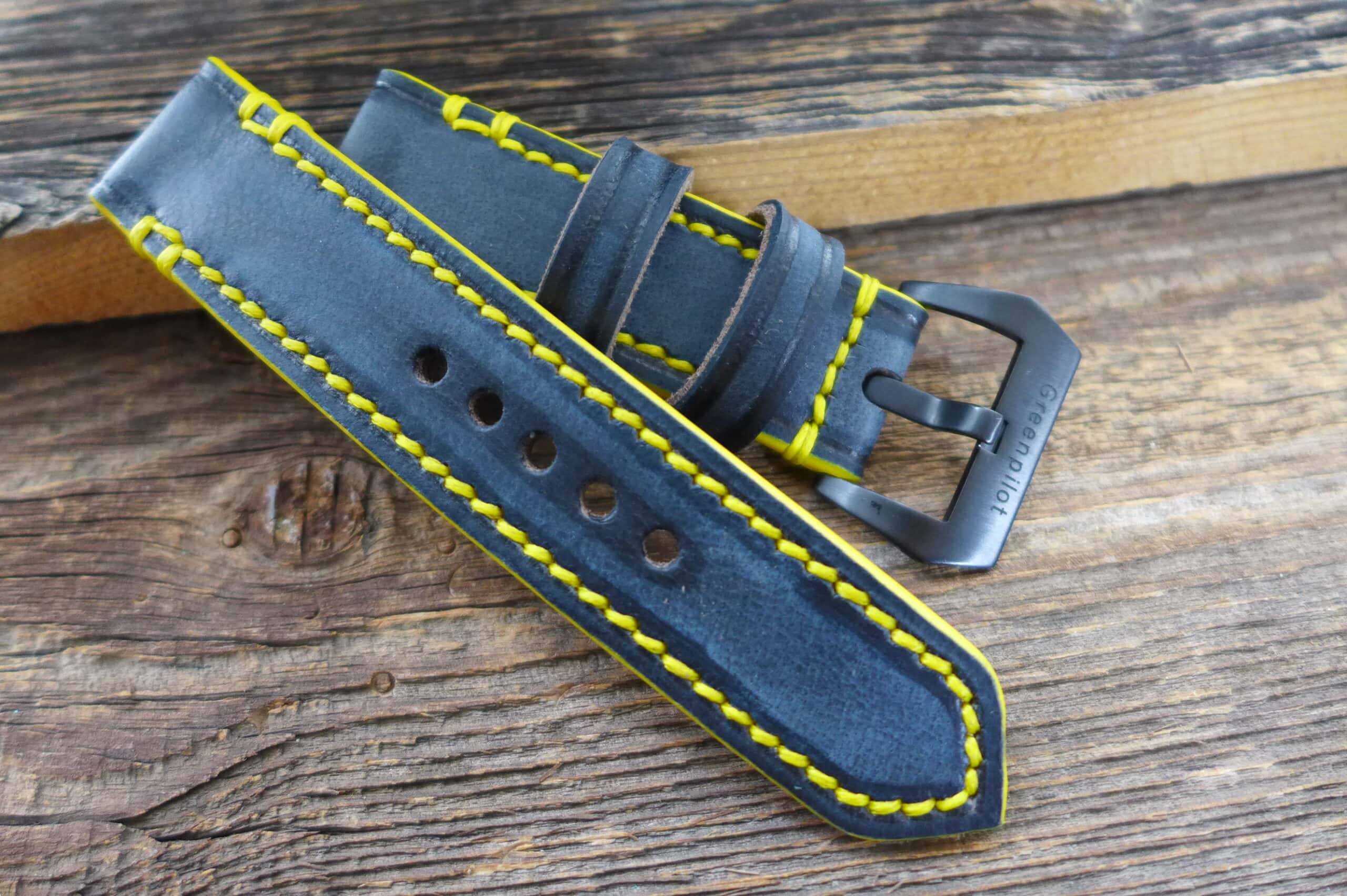 #1254 Wasserbüffel dunkelblau Solid-Line (Modell u-turn, Garn signalgelb, Kantenfarbe gelb)