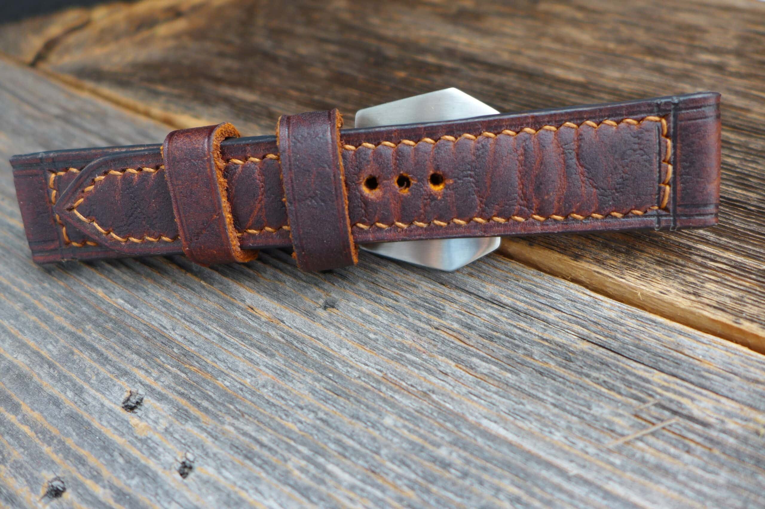 #1265 Tasman red rider bison Classic-Panerai Line (Modell closed stitch, Garn caramel, Kantenfarbe dunkel-transparent)