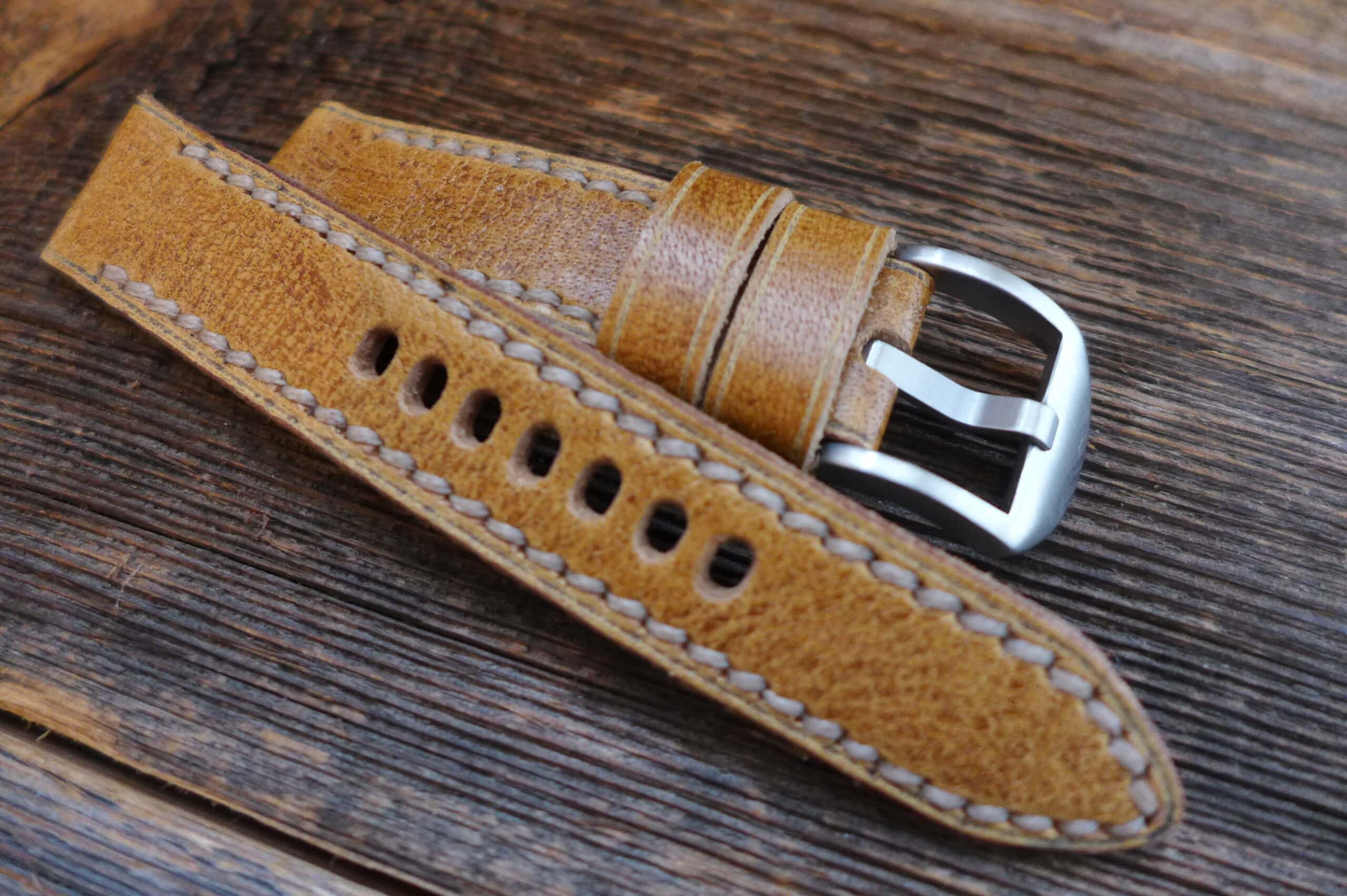 #1267 Büffelleder almond marbled Solid-Line (Modell open stitch, Garn natur)