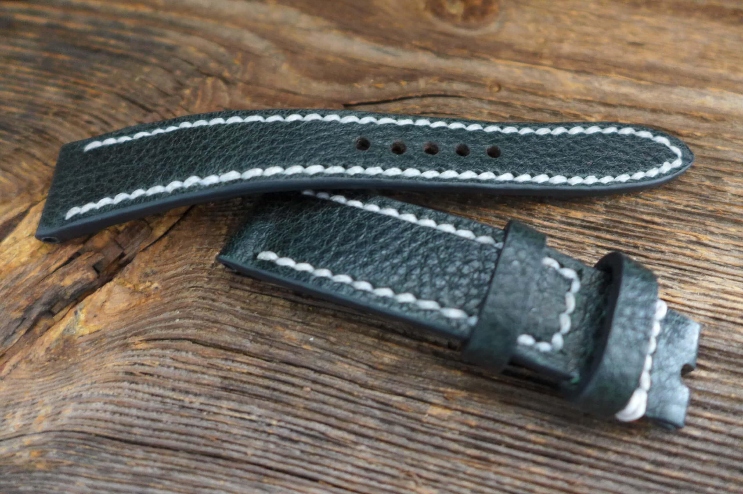#1271 schwarz-grün genarbt Solid-Line (Modell open stitch, Garn weiß, Kantenfarbe anthrazit)