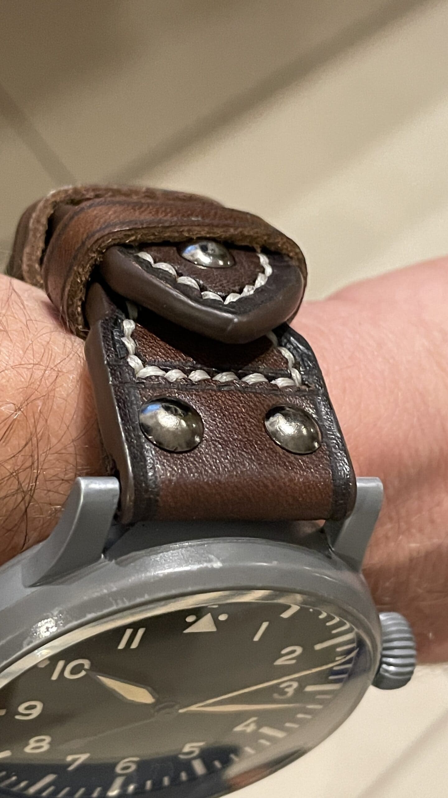 #1297 walnut true-ancient Vintage Line (Sondermodell Heritage Airman 2, Garn hellgrau, Kantenfarbe dunkelbraun)