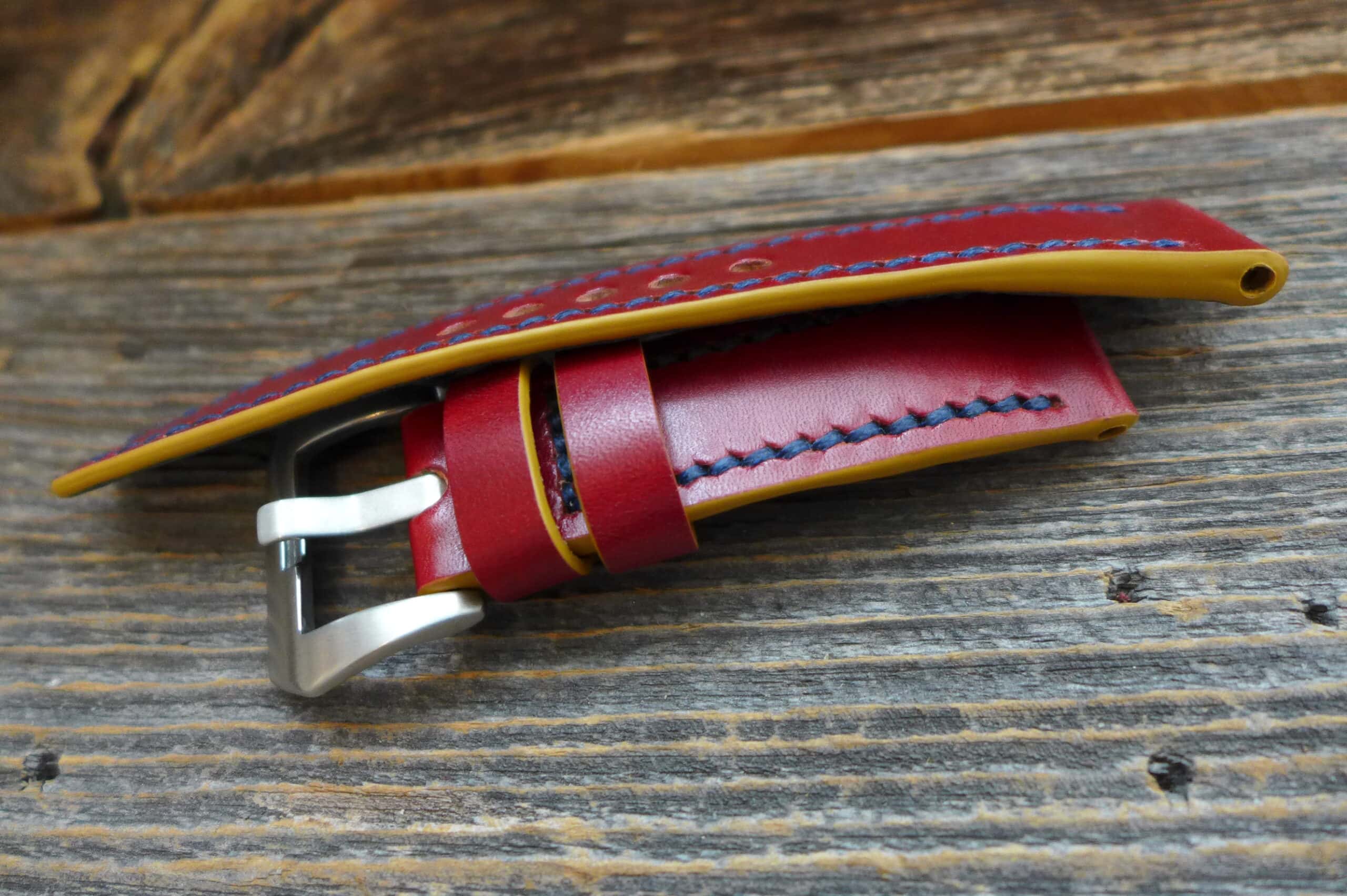 #1339 weinrot Solid-Line (Modell open stitch, Garn dunkelblau, Kantenfarbe gold)