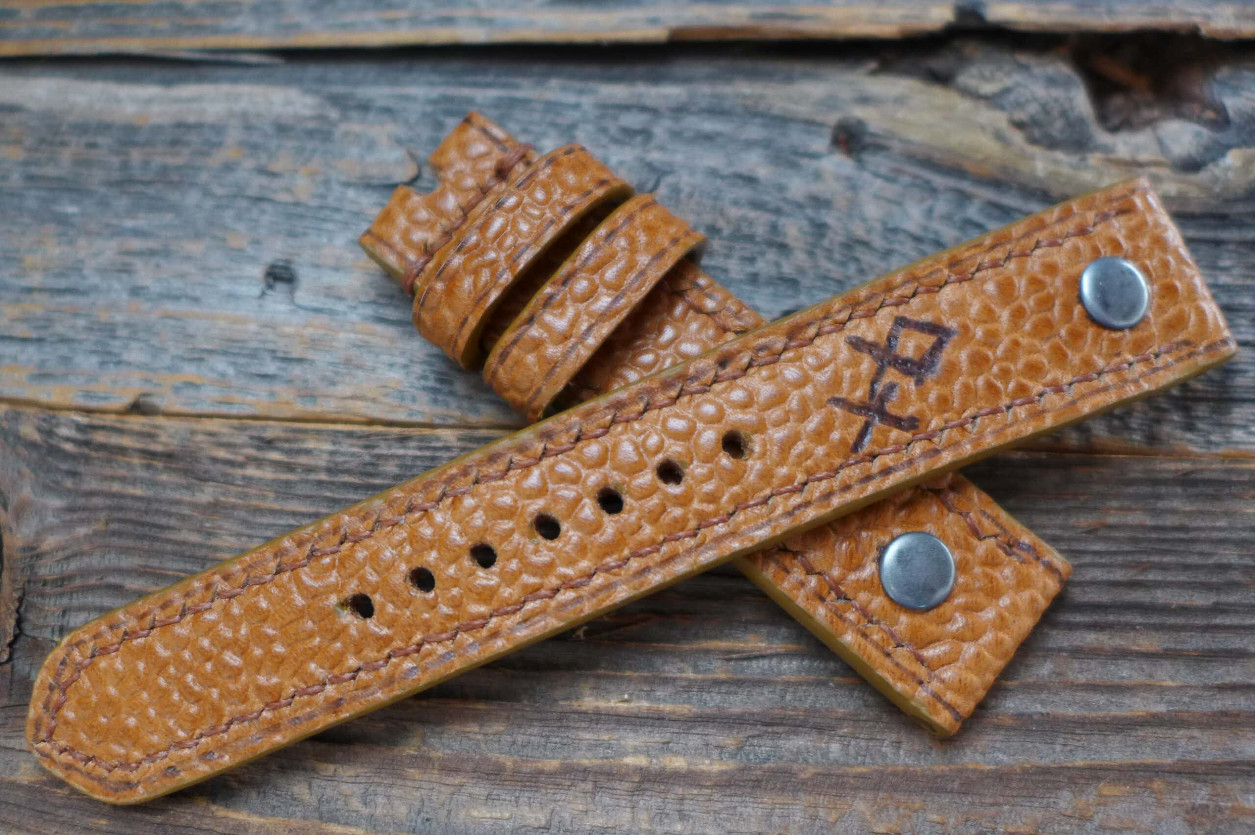 #1348 Scottish grained = Kundenleder Solid-Line (Sonderanfertigung, Modell open stitch mit Niete, Garn coffee, Kantenfarbe bronze-braun)