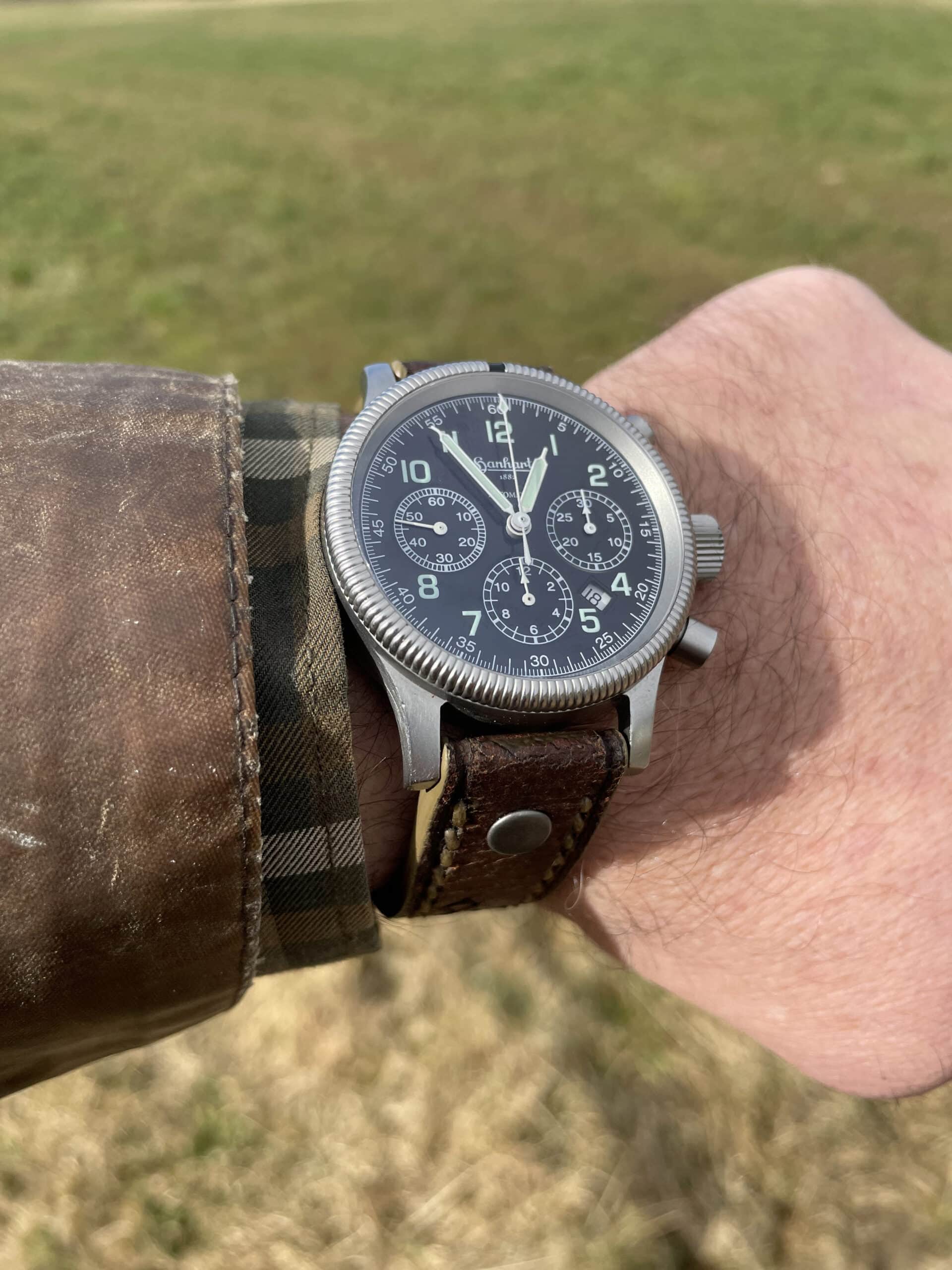 #1354 peat&smoke Vintage-Line (Sonderanfertigung, Modell open stitch mit Niete, Garn beige-ocker, Kantenfarbe beige-ocker)
