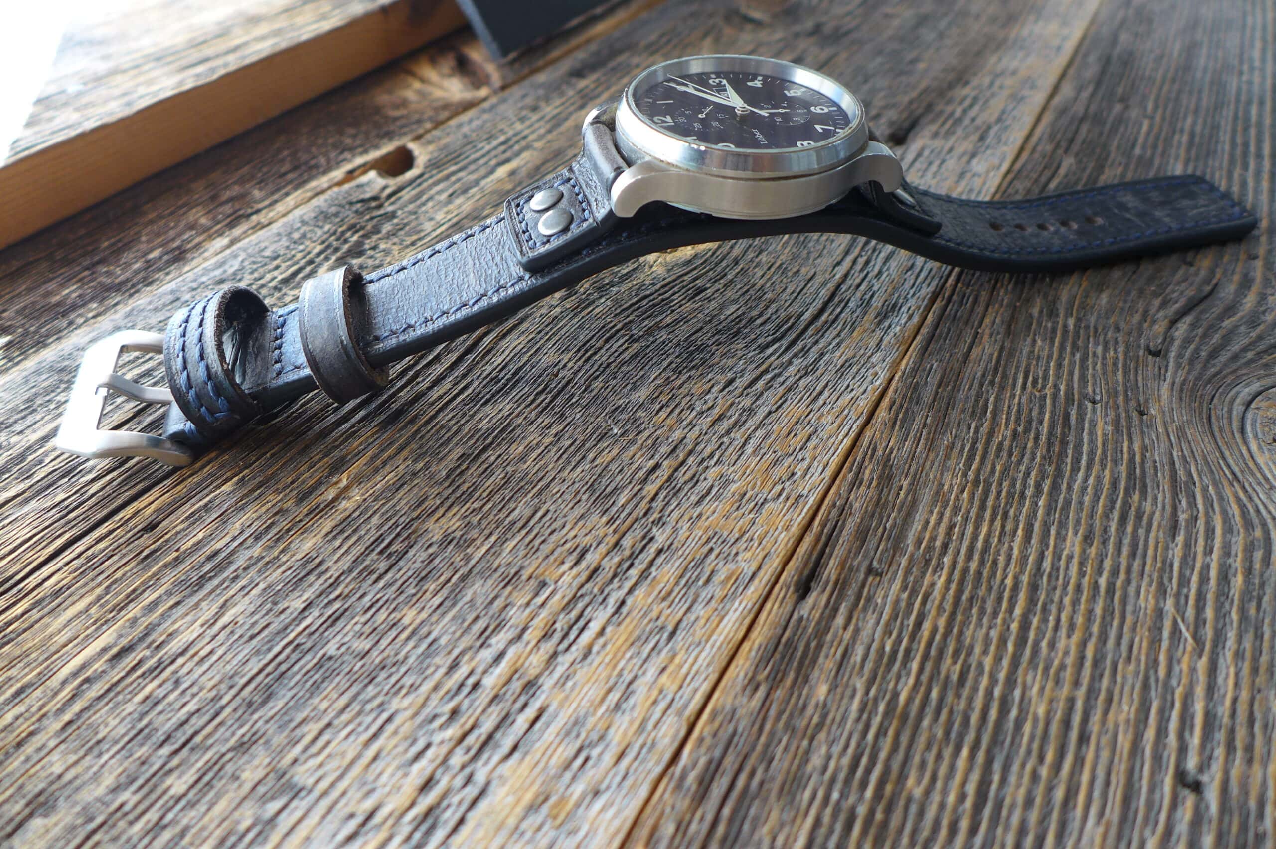 #1362 Wasserbüffel grau burned&aged Vintage Line (Sondermodell Heritage Airman 3, Garn dunkelblau, Kantenfarbe anthrazit)