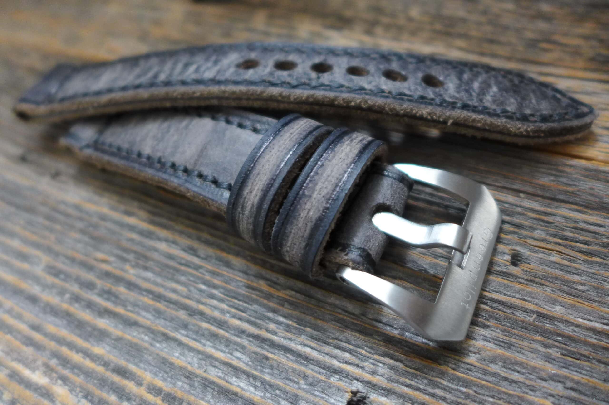 #1381 Wasserbüffel grau burned&aged Vintage-Line (Modell closed stitch, Garn schwarz)