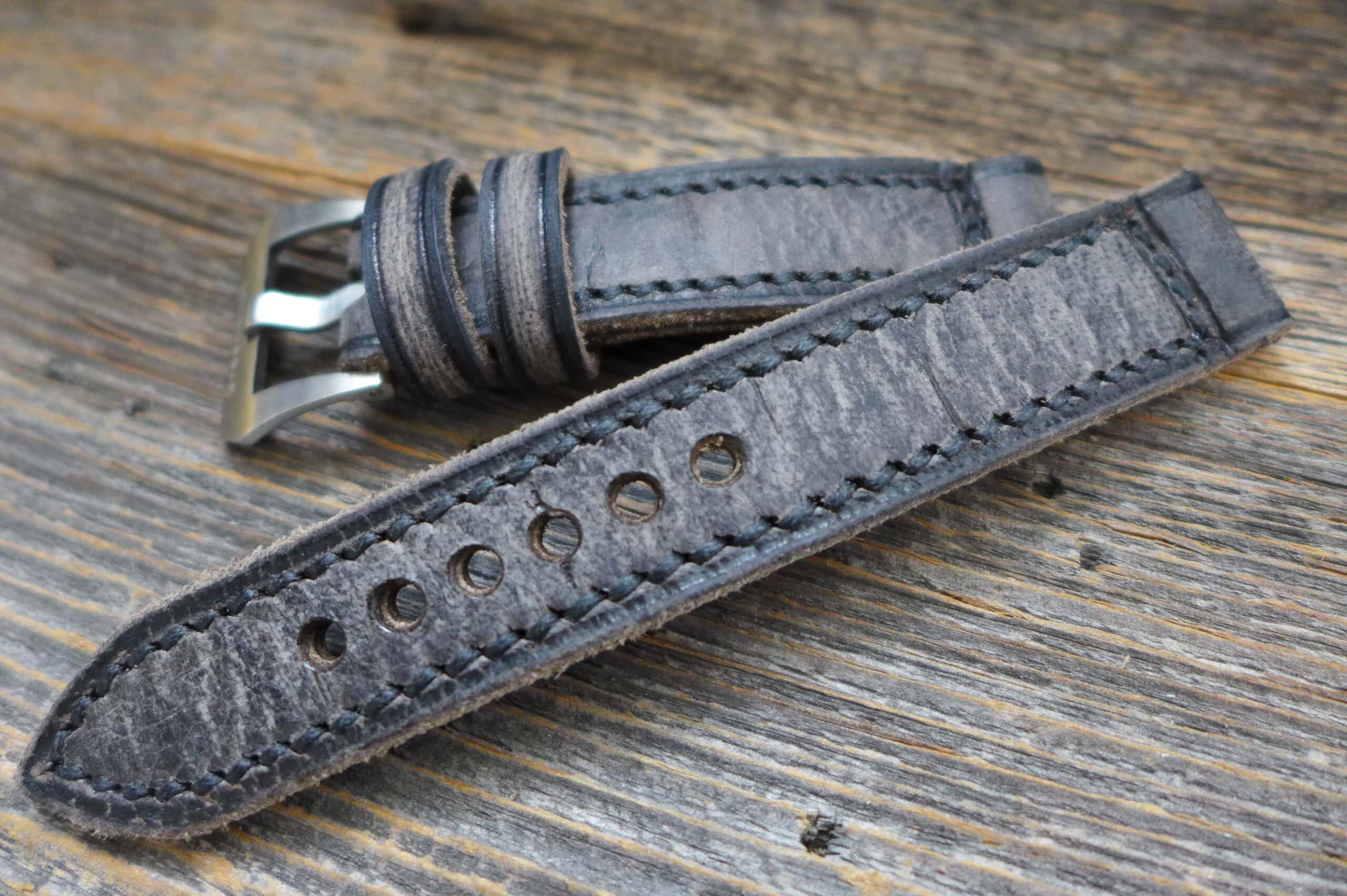 #1382 Wasserbüffel grau burned&aged Vintage-Line (Modell closed stitch, Garn schwarz)