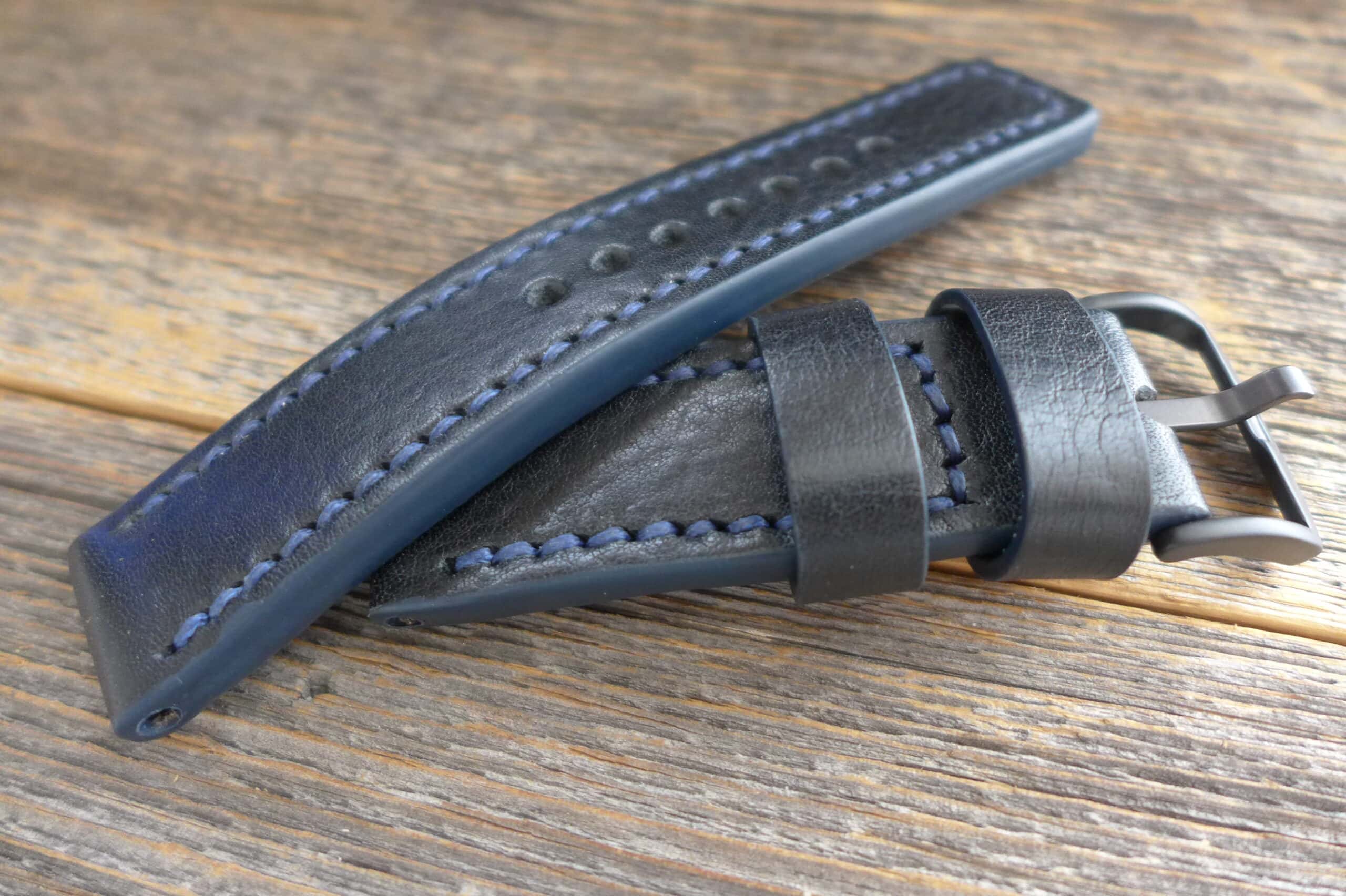 #1383 schwarz genarbt seidenmatt Solid-Line (Modell open stitch, Garn dunkelblau)