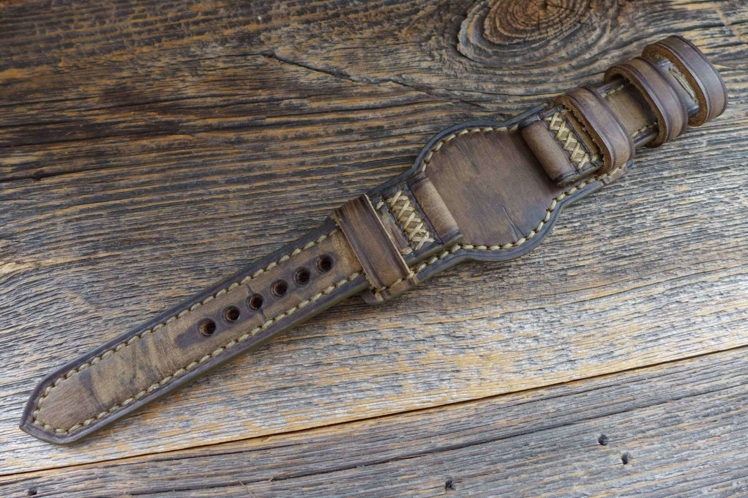#1386 dunkel oliv-ocker burned&aged Vintage Line (Sondermodell Bundstrap GP 2 – the round one, Garn beige-ocker)