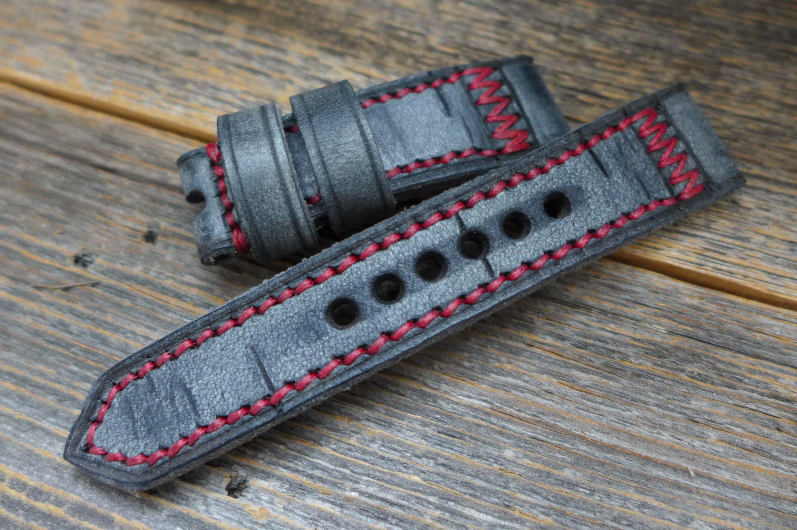 #1390 graphit-grau burned&aged Vintage Line (Modell triangle stitch, Garn dunkelrot)
