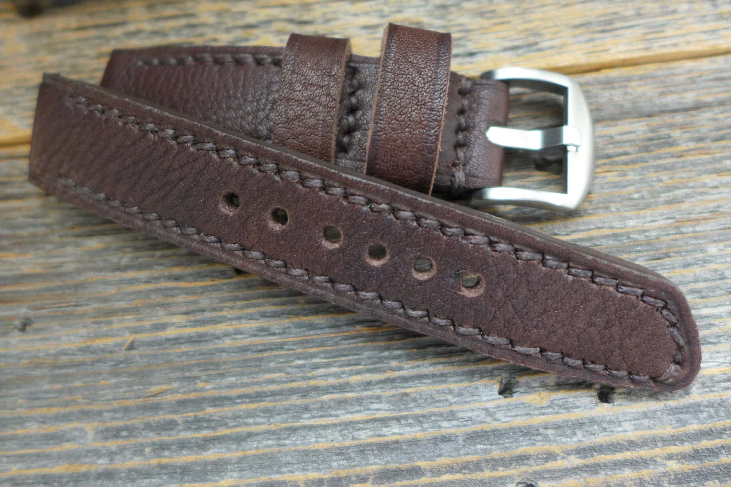 #1400 dark puro grained Solid-Line (Modell open stitch, Garn dunkelbraun)