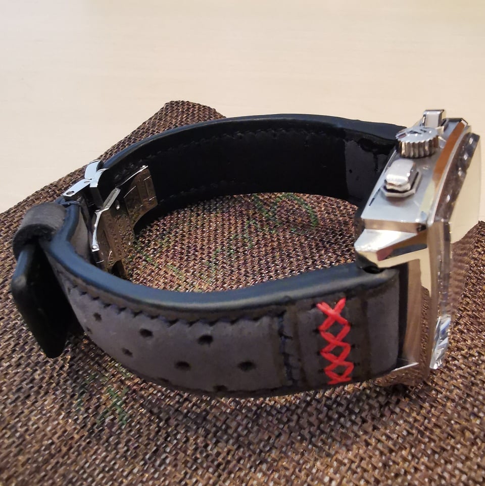 #1418 S.B.Foot abilene navy nubuck Classic-Panerai Line (Sondermodell Racer vintage padded 1, Modelle cross stitch & closed stitch, Garn watermelon red & navy blue, Kantenfarbe dunkelblau)