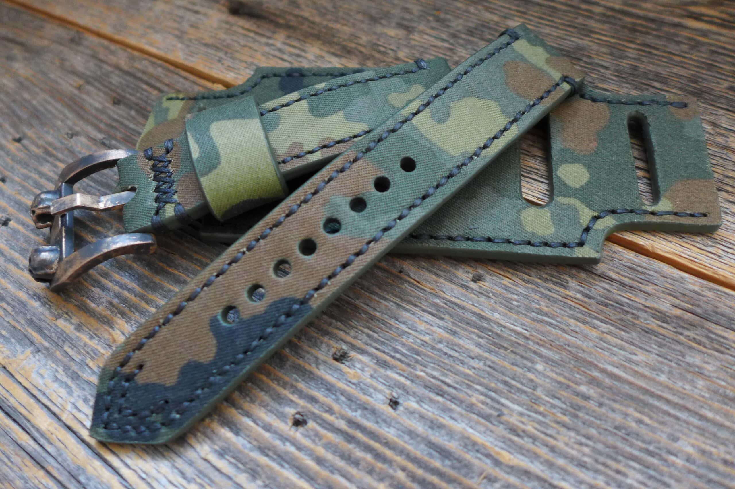#1482 BW Tarnmuster Canvas-Line (Sonderanfertigung, Modell marine, Garn schwarz, Kantenfarbe oliv)
