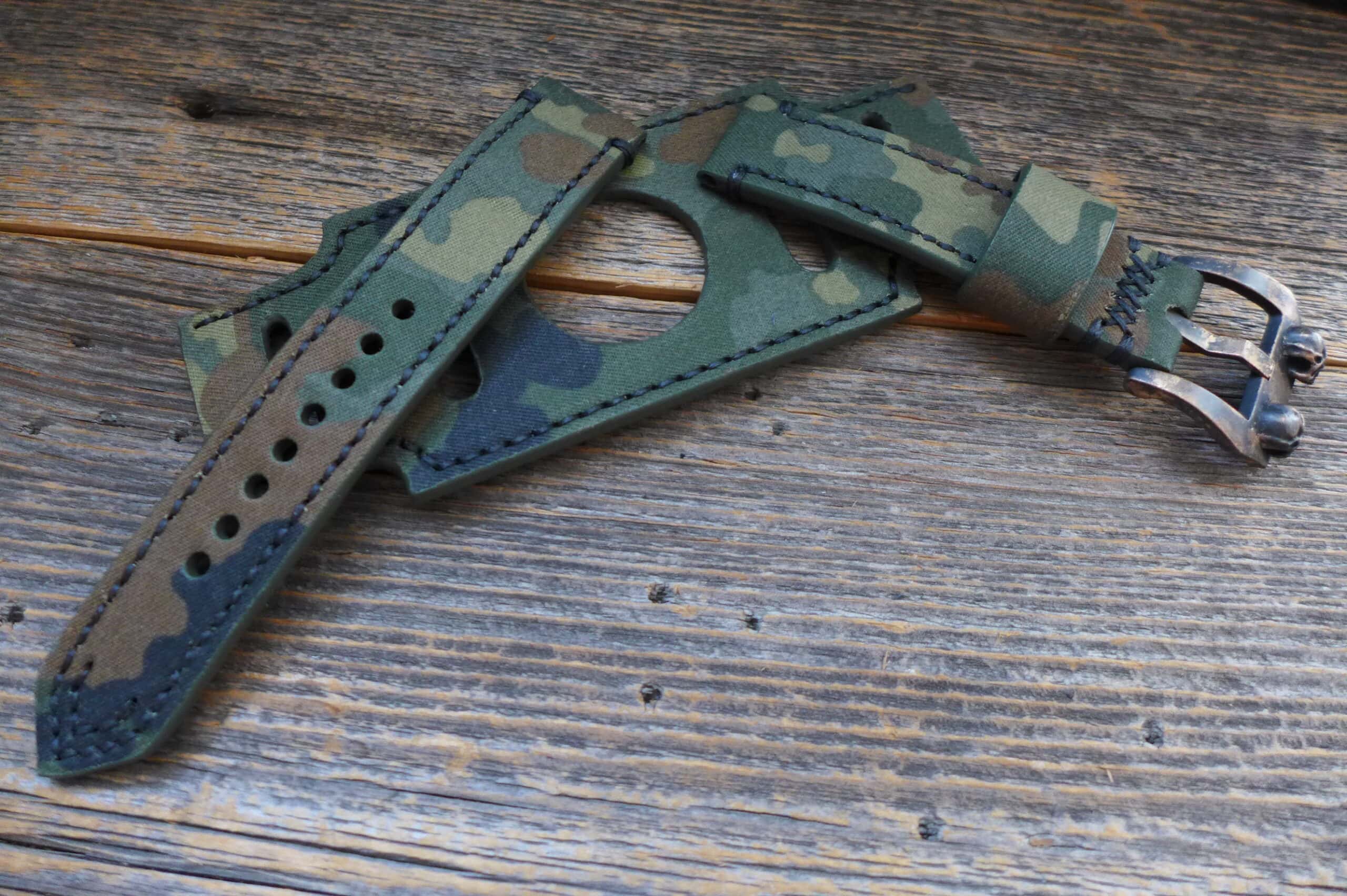 #1484 BW Tarnmuster Canvas-Line (Sonderanfertigung, Modell marine, Garn schwarz, Kantenfarbe oliv)