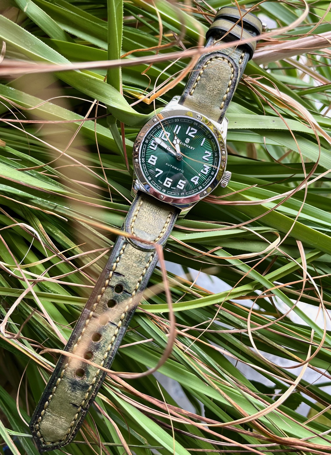 #2041 farngrün burned&aged Vintage Line (Modell half circle, Garn khaki)