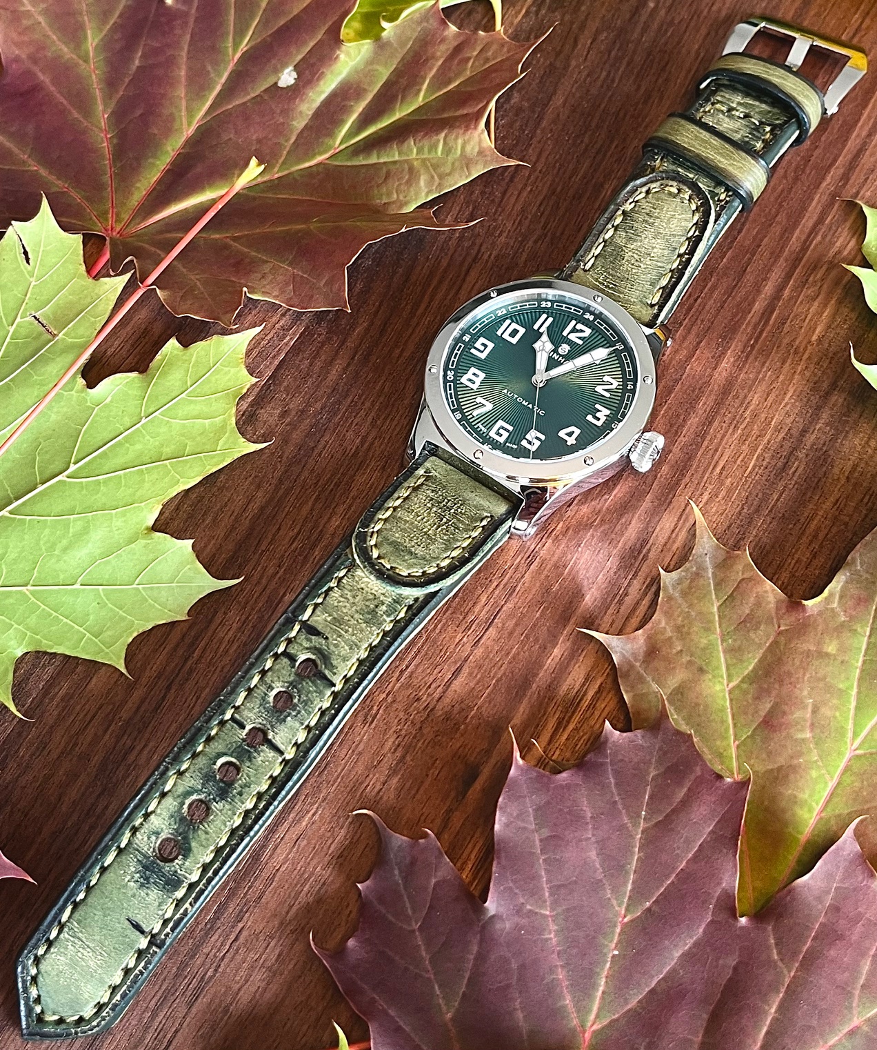 #2042 farngrün burned&aged Vintage Line (Modell half circle, Garn khaki)