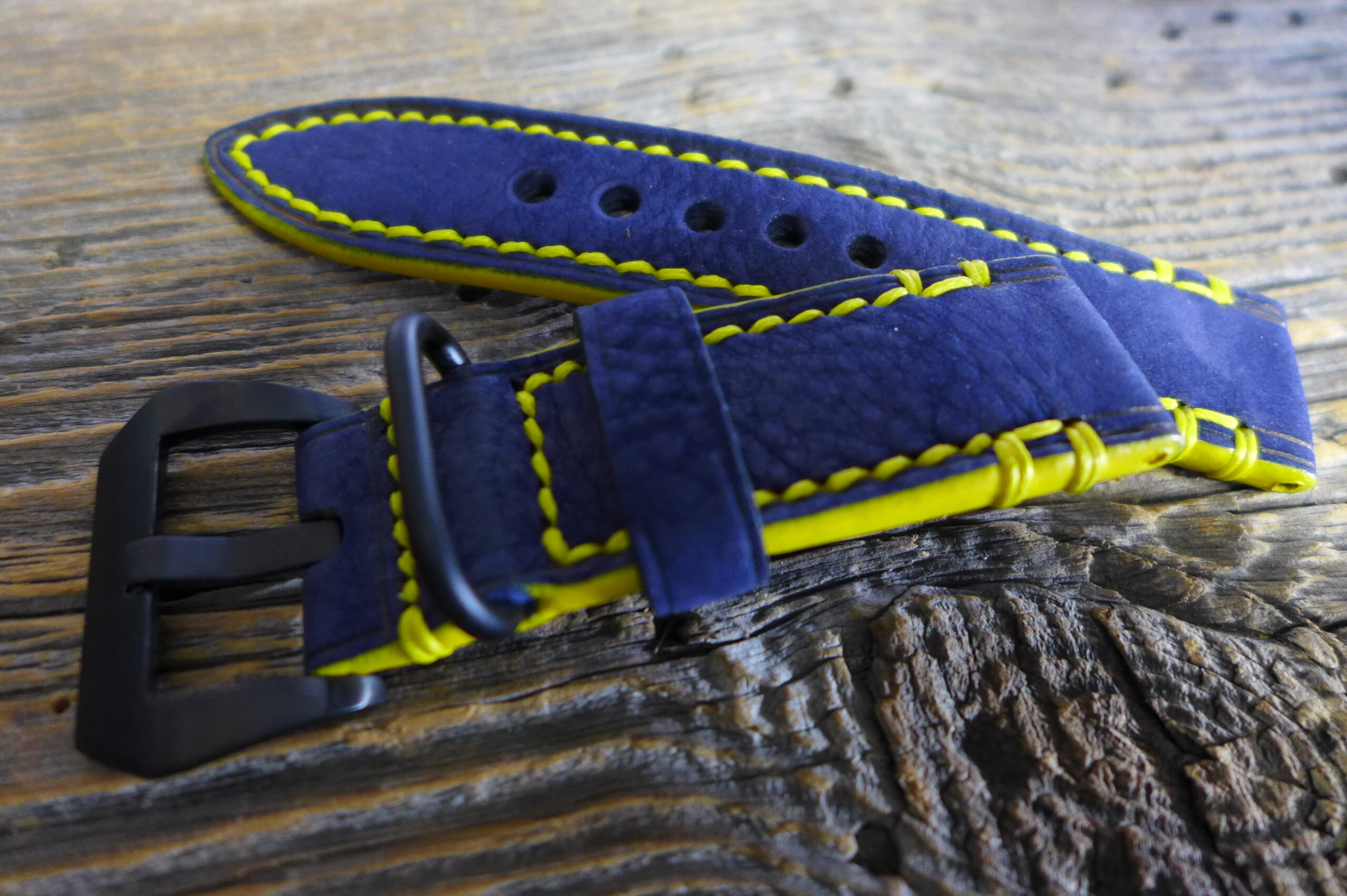 #2121 black-blue denim Solid-Line (Modell u-turn, Kantenfarbe gelb, Garn signalgelb)