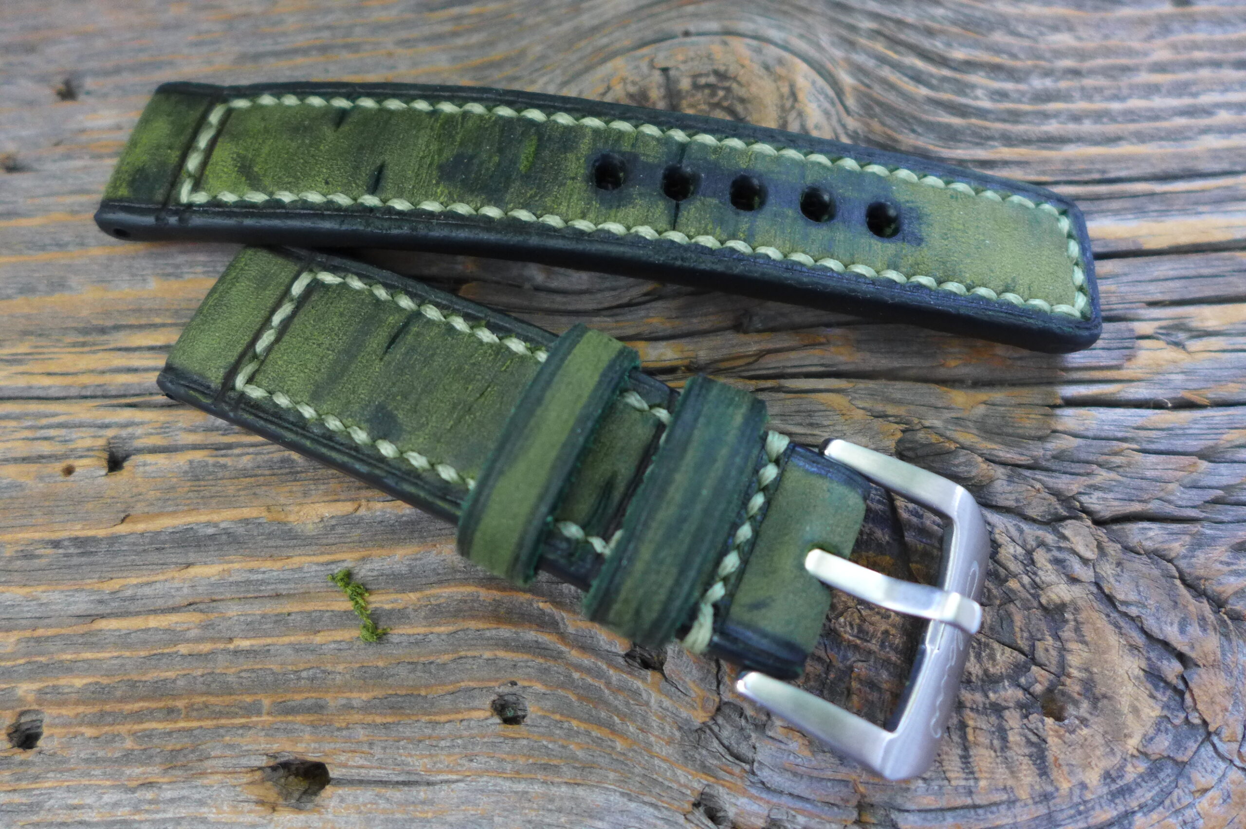 #2124 Horween Tannery Amazonian chamois latigo Classic-Panerai Line (Modell closed stitch, Garn hellgrün, Kantenfarbe schwarz)