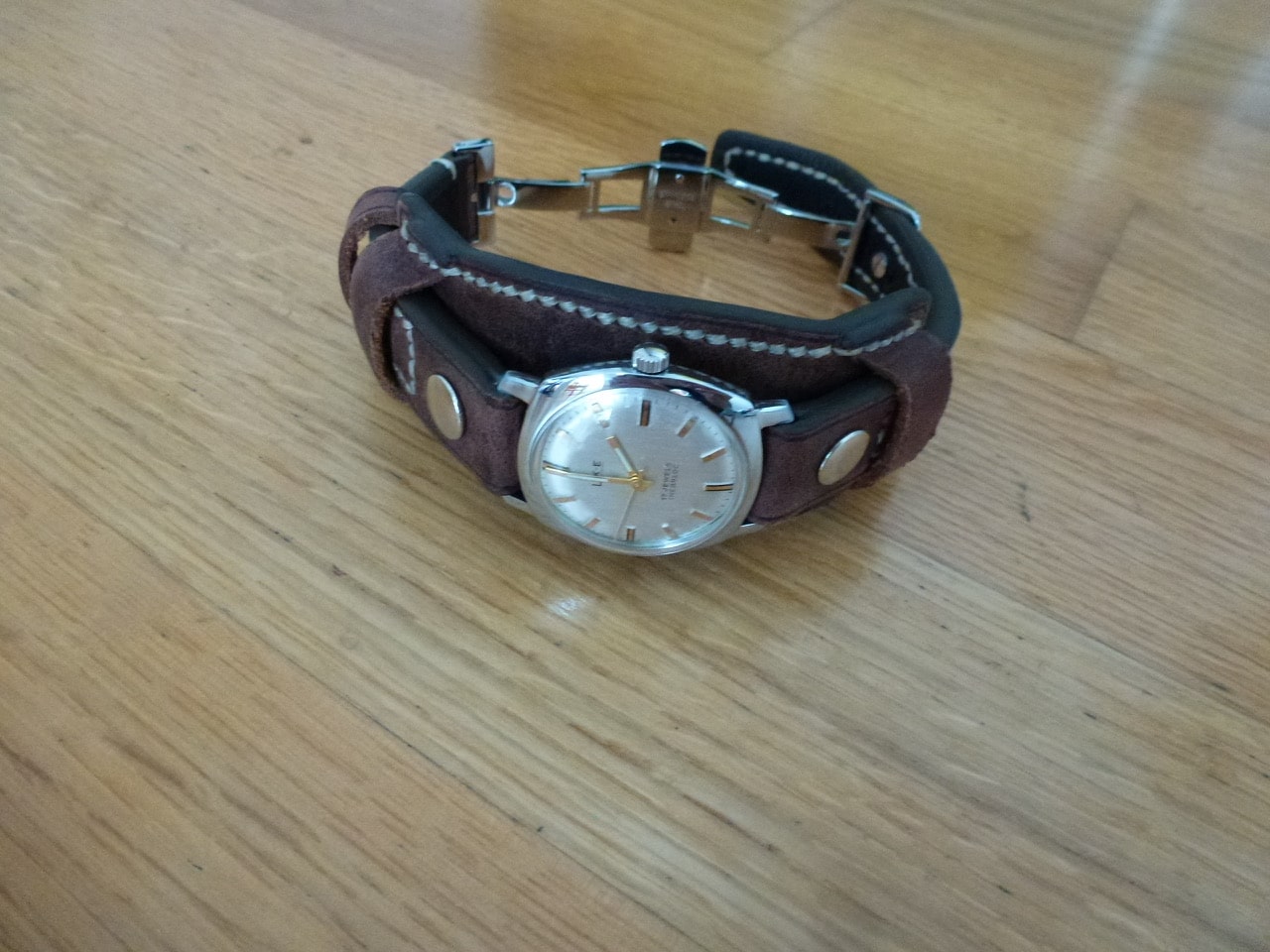 #805 Wasserbüffel dunkelbraun Solid-Line (Sondermodell Bund Strap GP1//aviator, Kantenfarbe dunkelbraun, Garn vanilla)