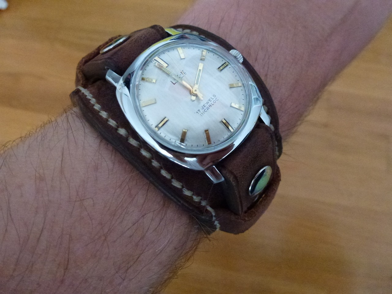 #807 Wasserbüffel dunkelbraun Solid-Line (Sondermodell Bund Strap GP1//aviator, Kantenfarbe dunkelbraun, Garn vanilla)