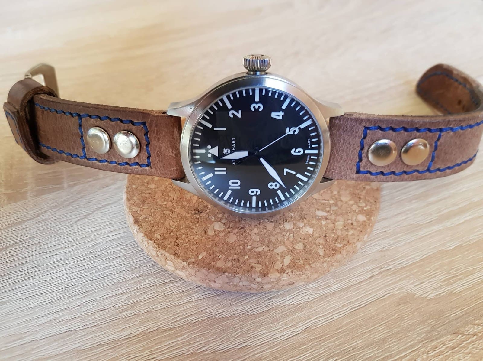 #831 natur Sand PullUp Solid-Line (Modell x-boxed mit Nieten, Garn royalblau)