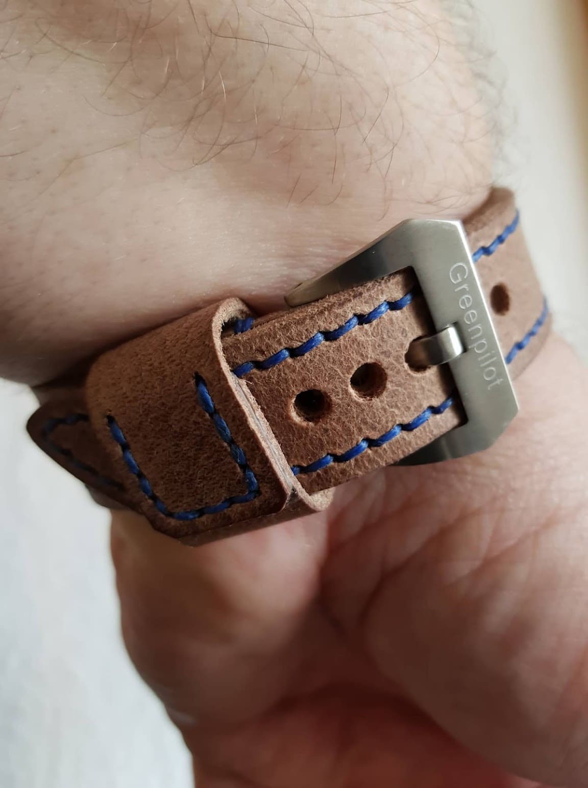 #833 natur Sand PullUp Solid-Line (Modell x-boxed mit Nieten, Garn royalblau)